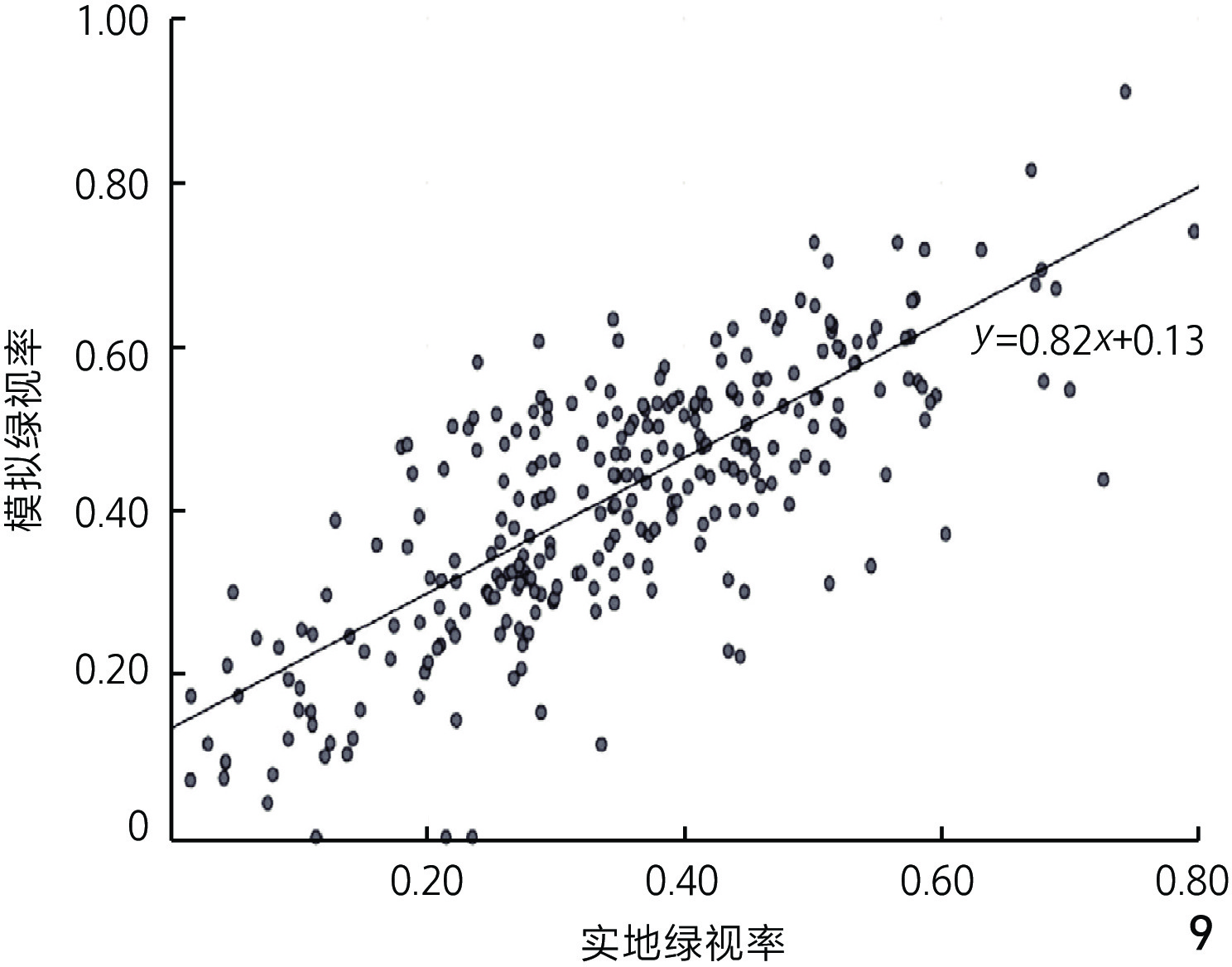 表2 实地绿视率与模拟绿视率的相关性分析Tab. 2 Field and simulated GVI correlation analysis |