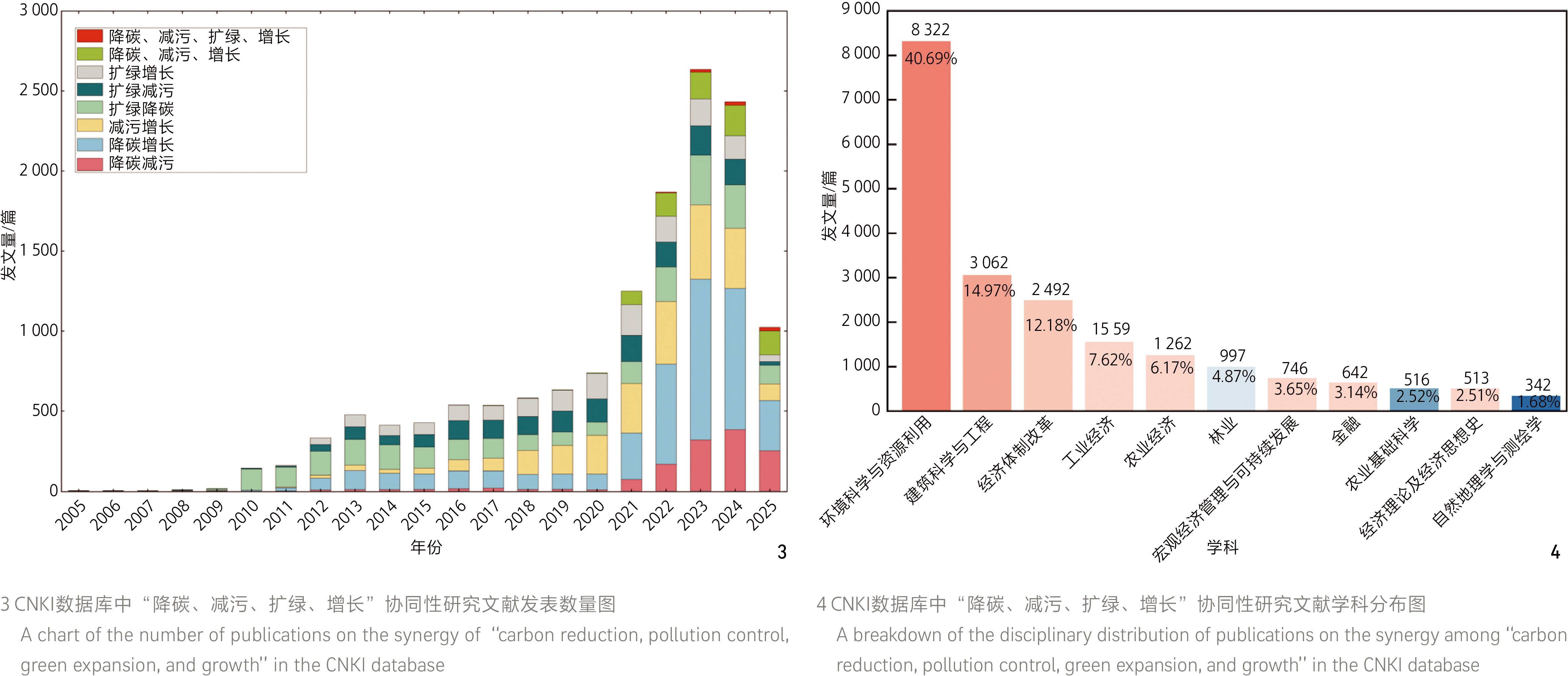 梳理2005年以来与“降碳、减污、扩绿、增长”等领域相关的国家政策推进过程、内涵及关联机制、协同研究发文趋势及学科分布情况,系统剖析风景园林学科通过“扩绿”实现“降碳”“减污”“增长”协同增效的研究内容与发展趋势。