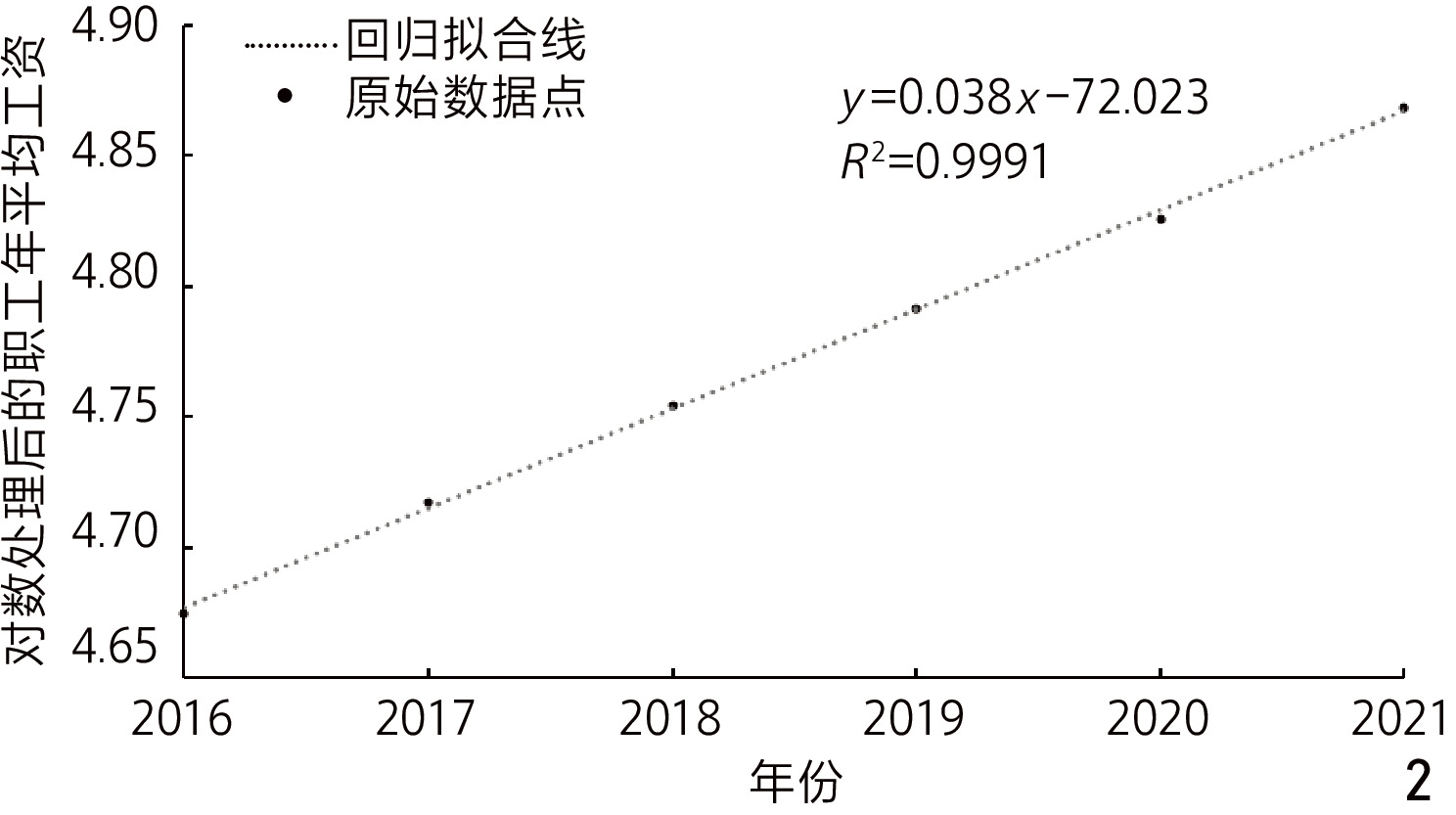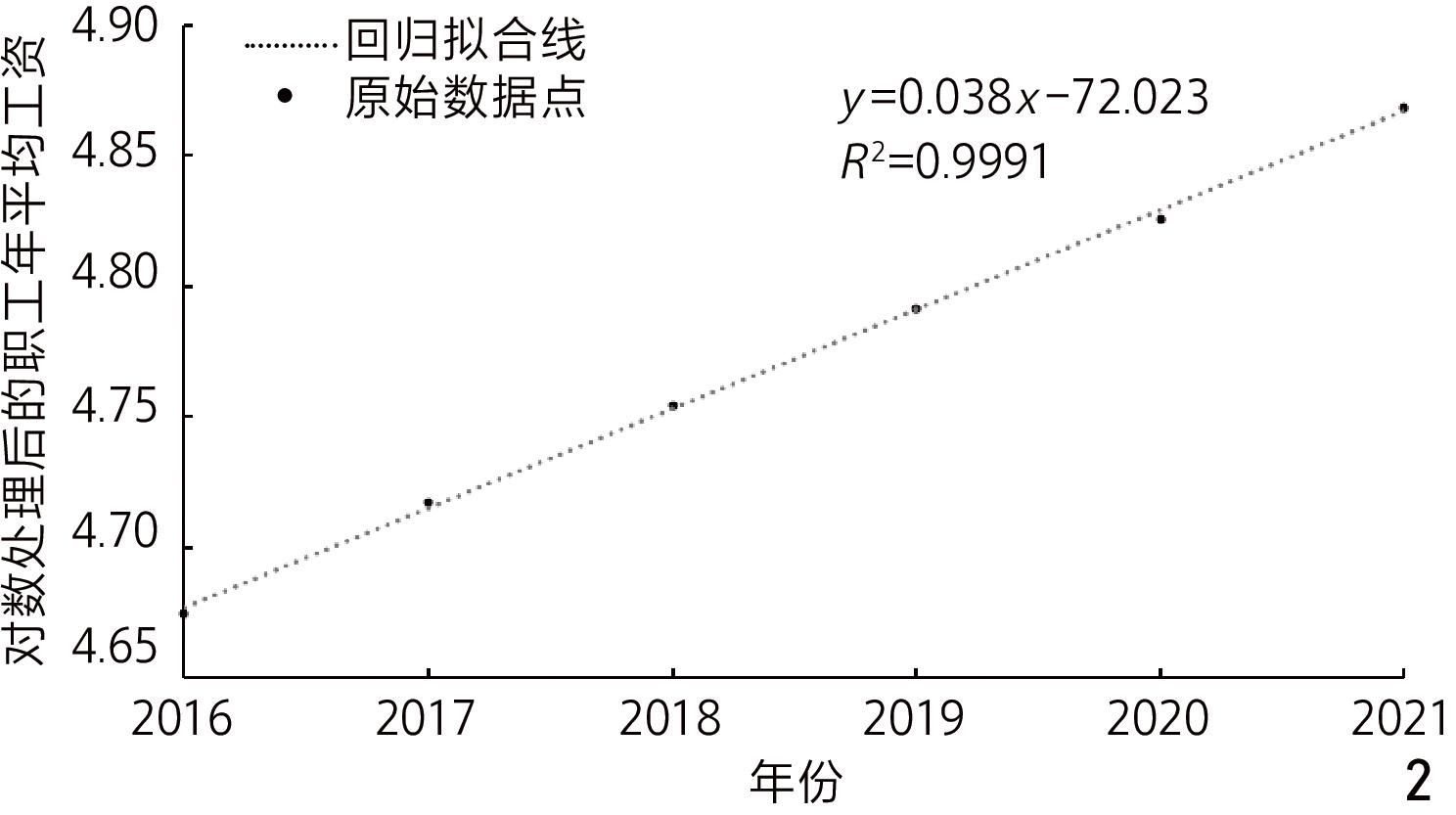 | 年份 | 职工年平均工资/元 | 对数处理后数值 |