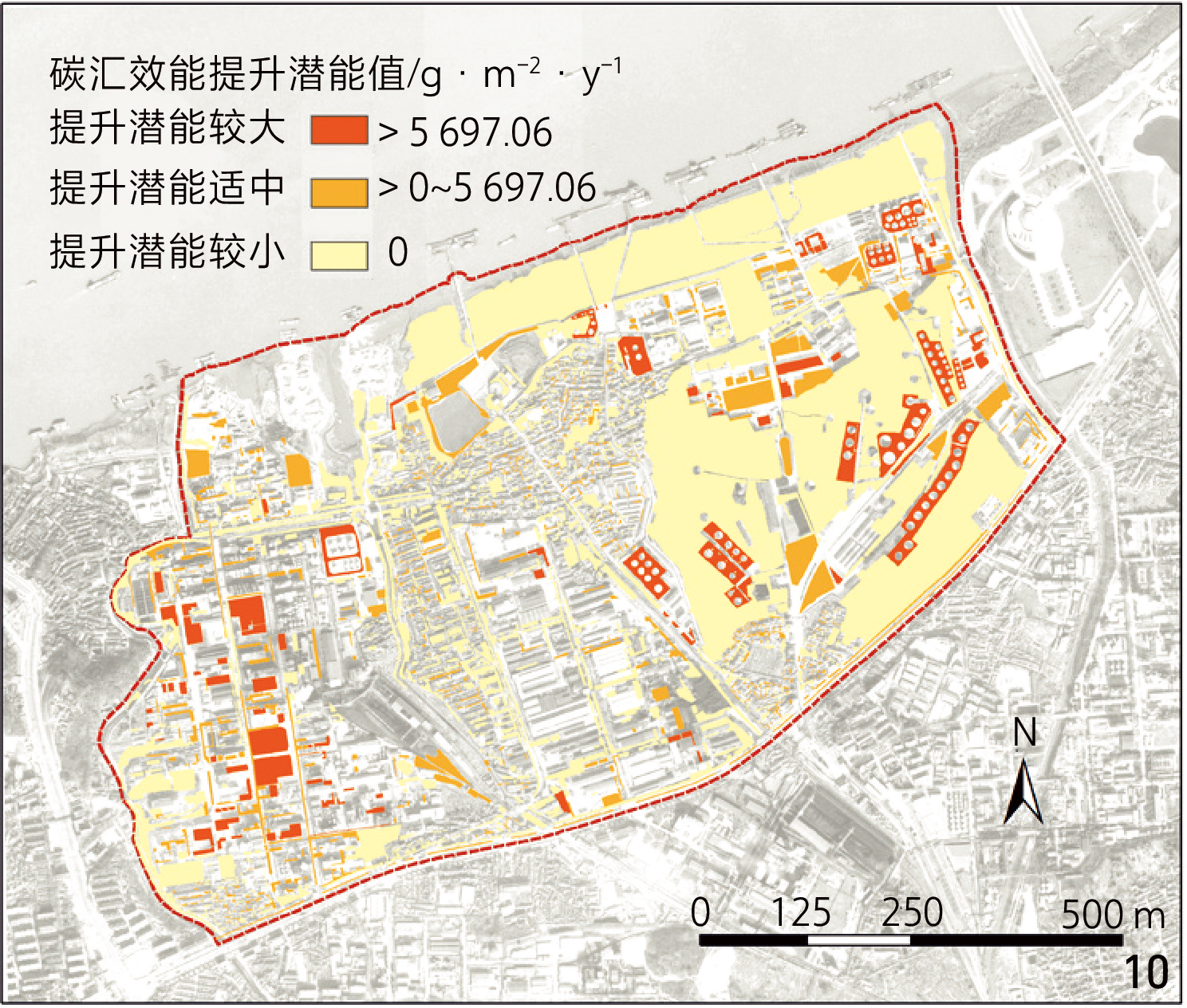 图10 建设原状碳汇效能提升潜力分级Fig. 10 Classification of carbon sequestration efficiency improvement potential under original conditions |