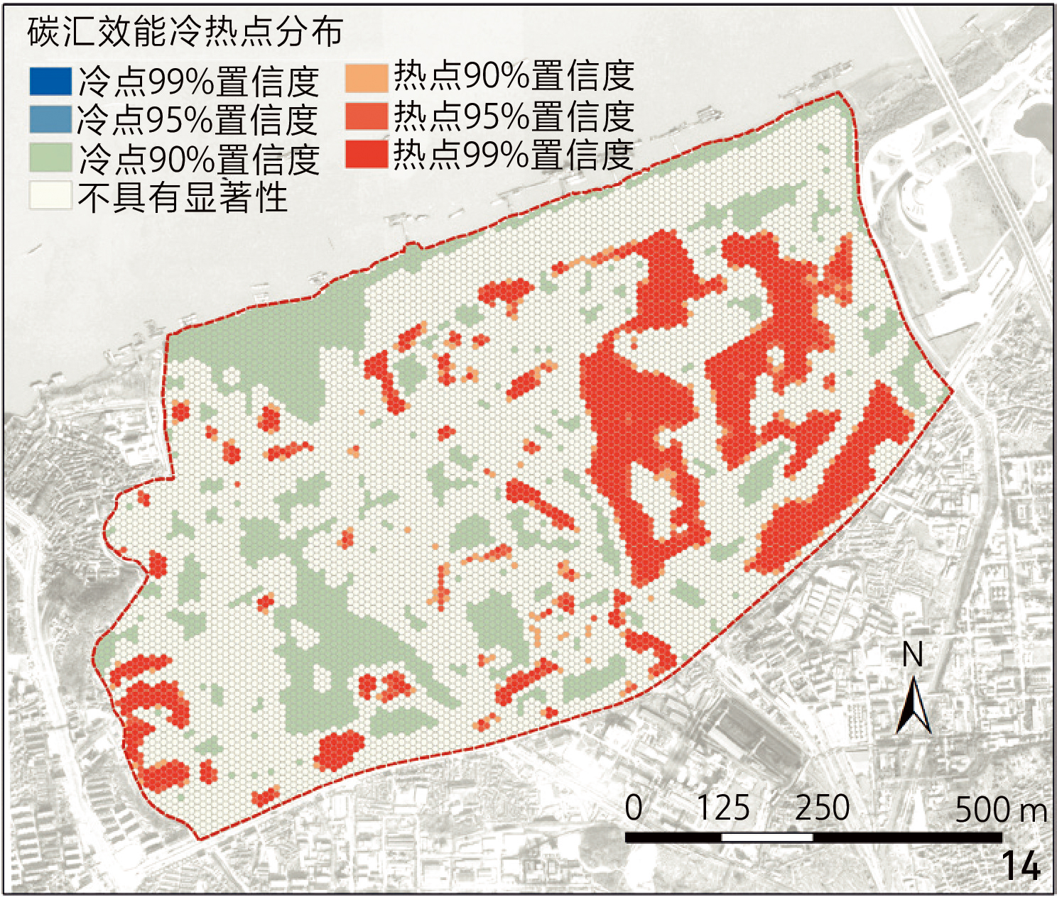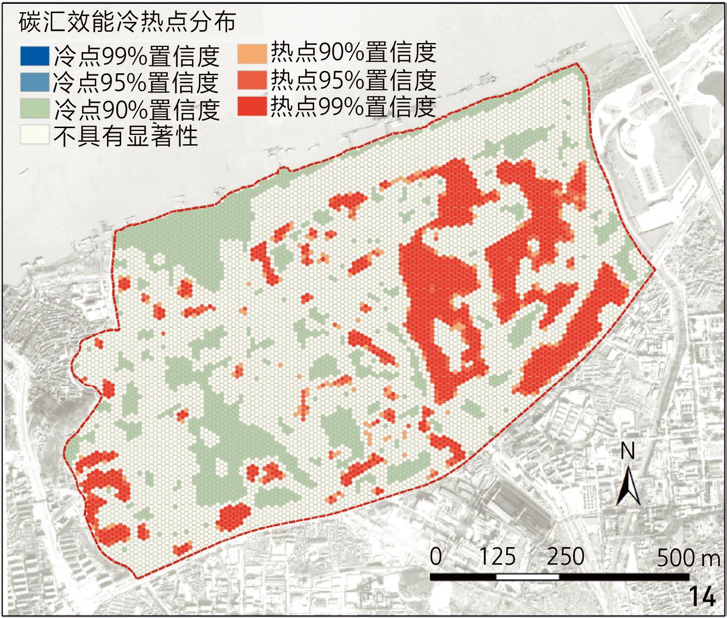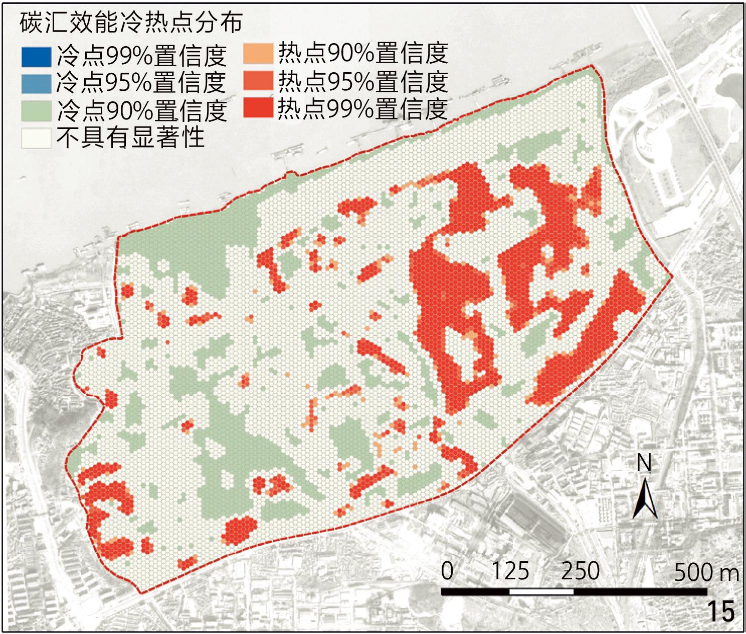 图14 建设原状碳汇效能热点分析Fig. 14 Hotspot analysis of carbon sequestration efficiency under original conditions |