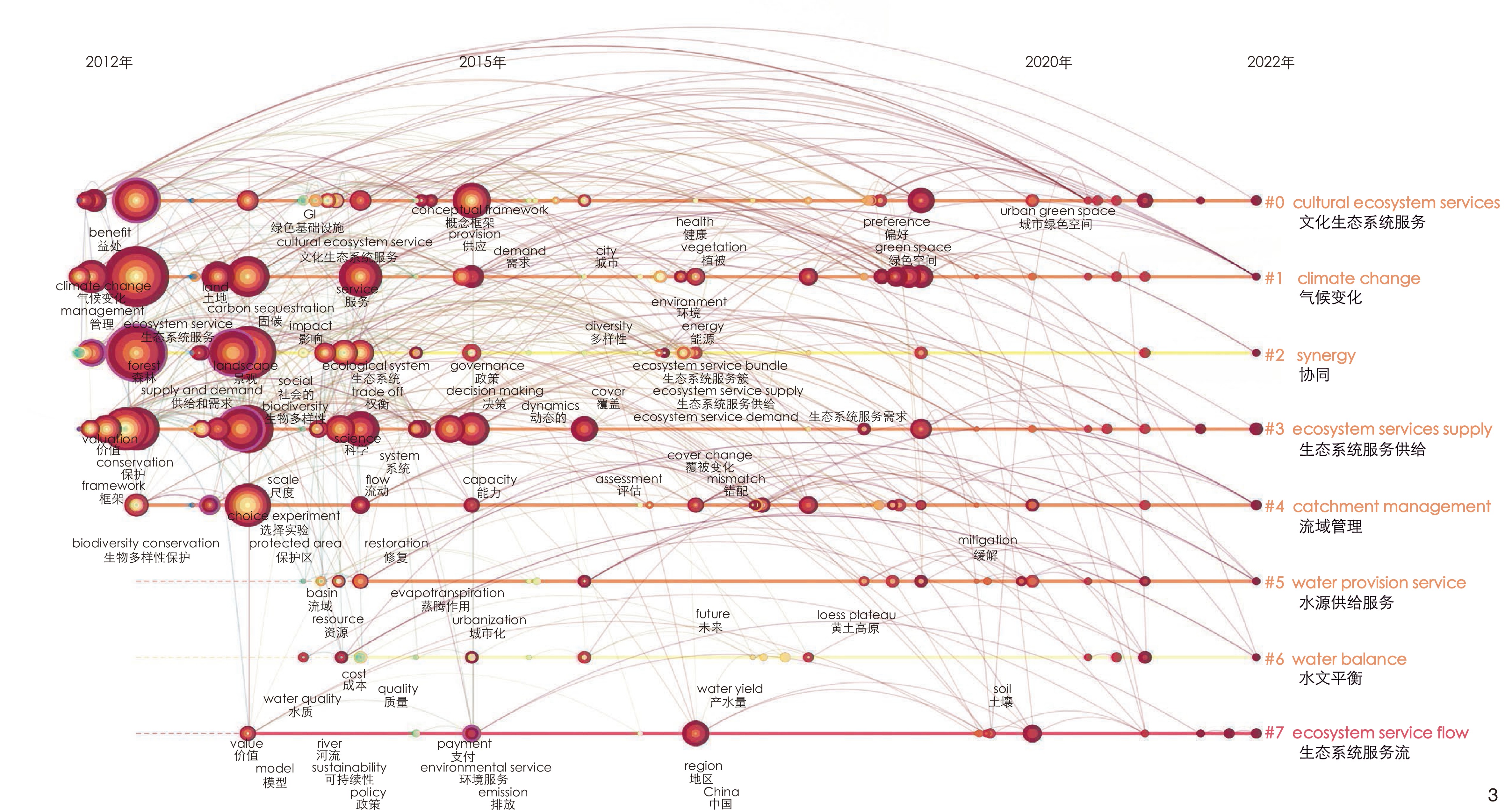 WoS核心合集中ESs供需研究关键词聚类时间线图谱