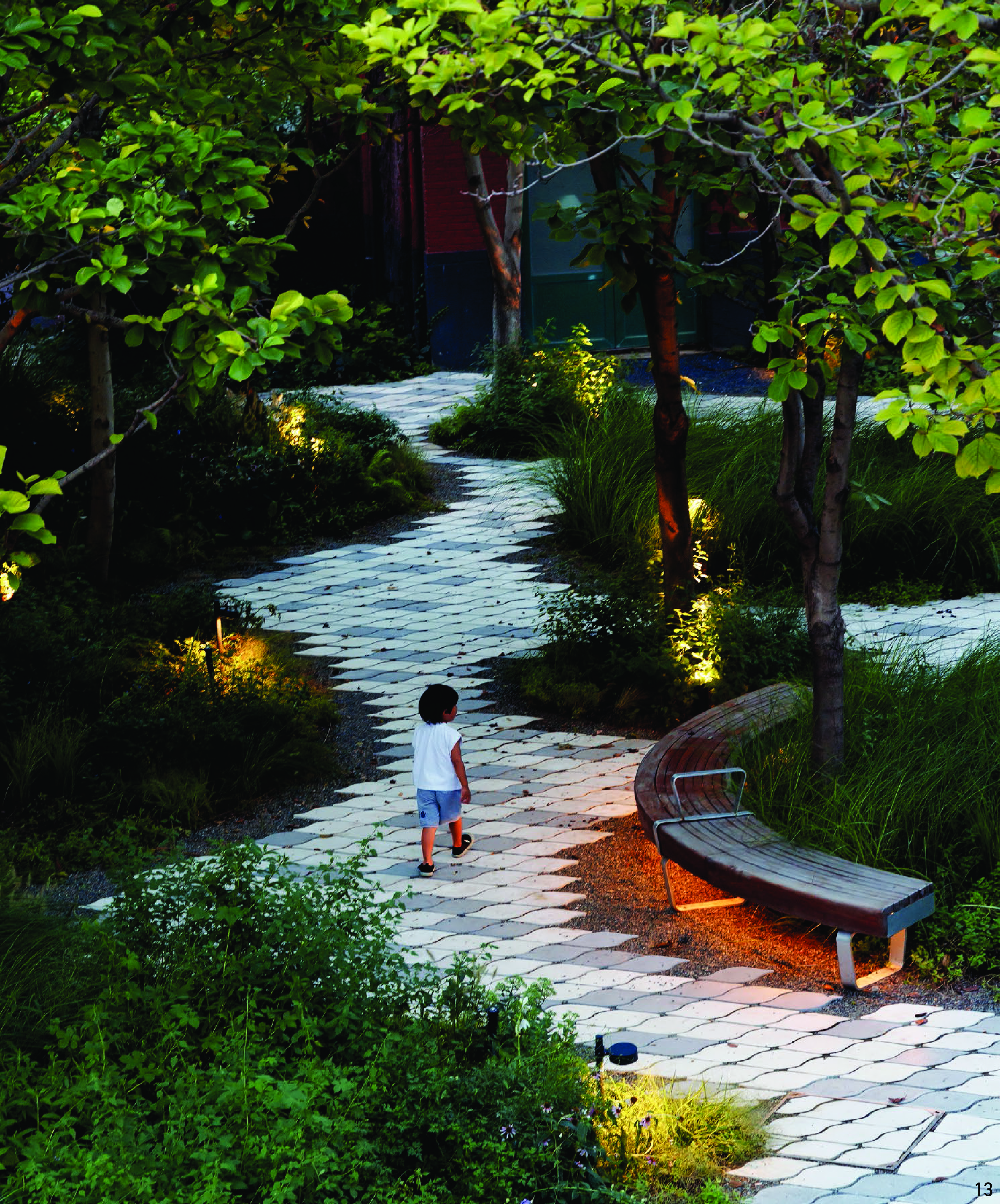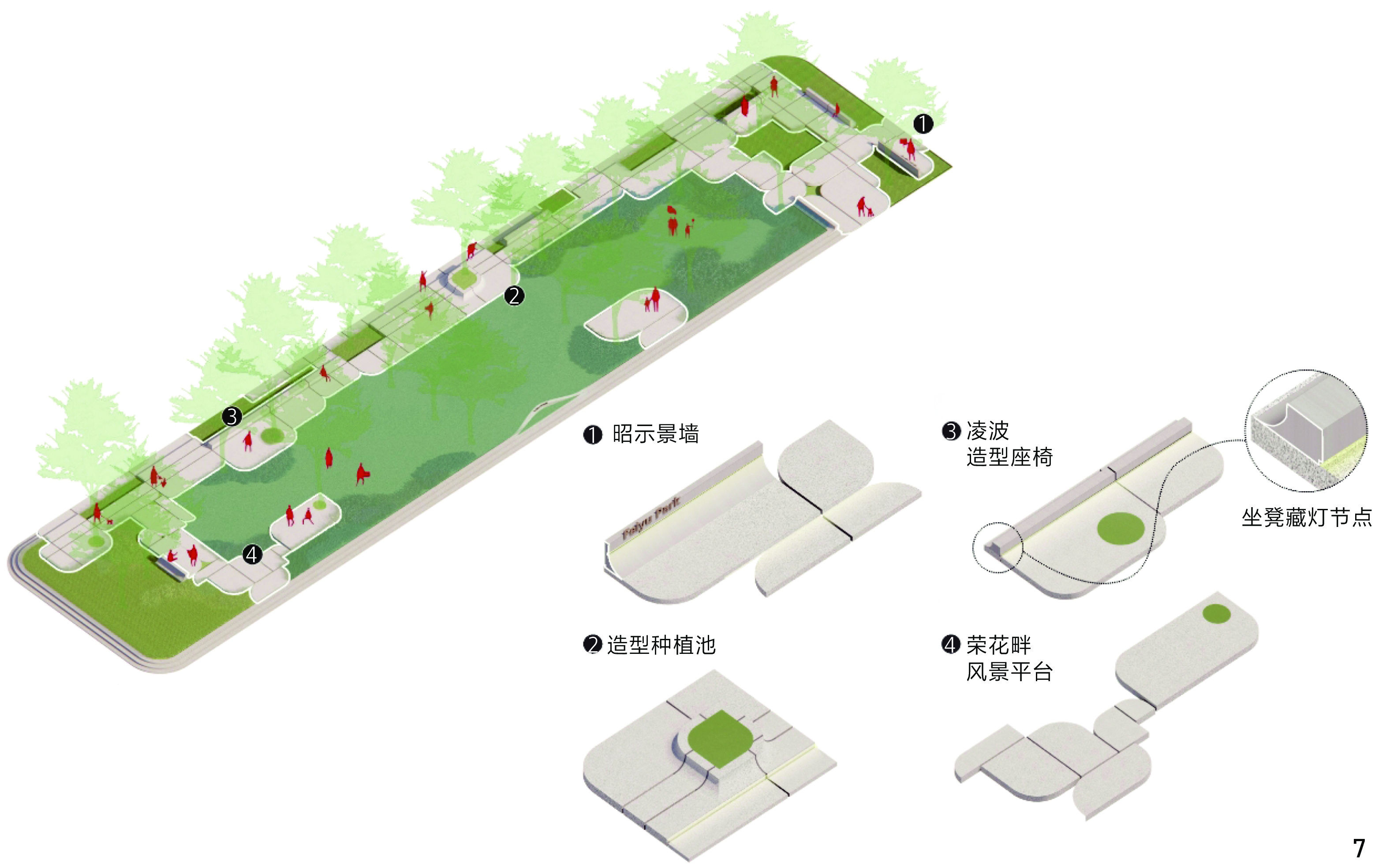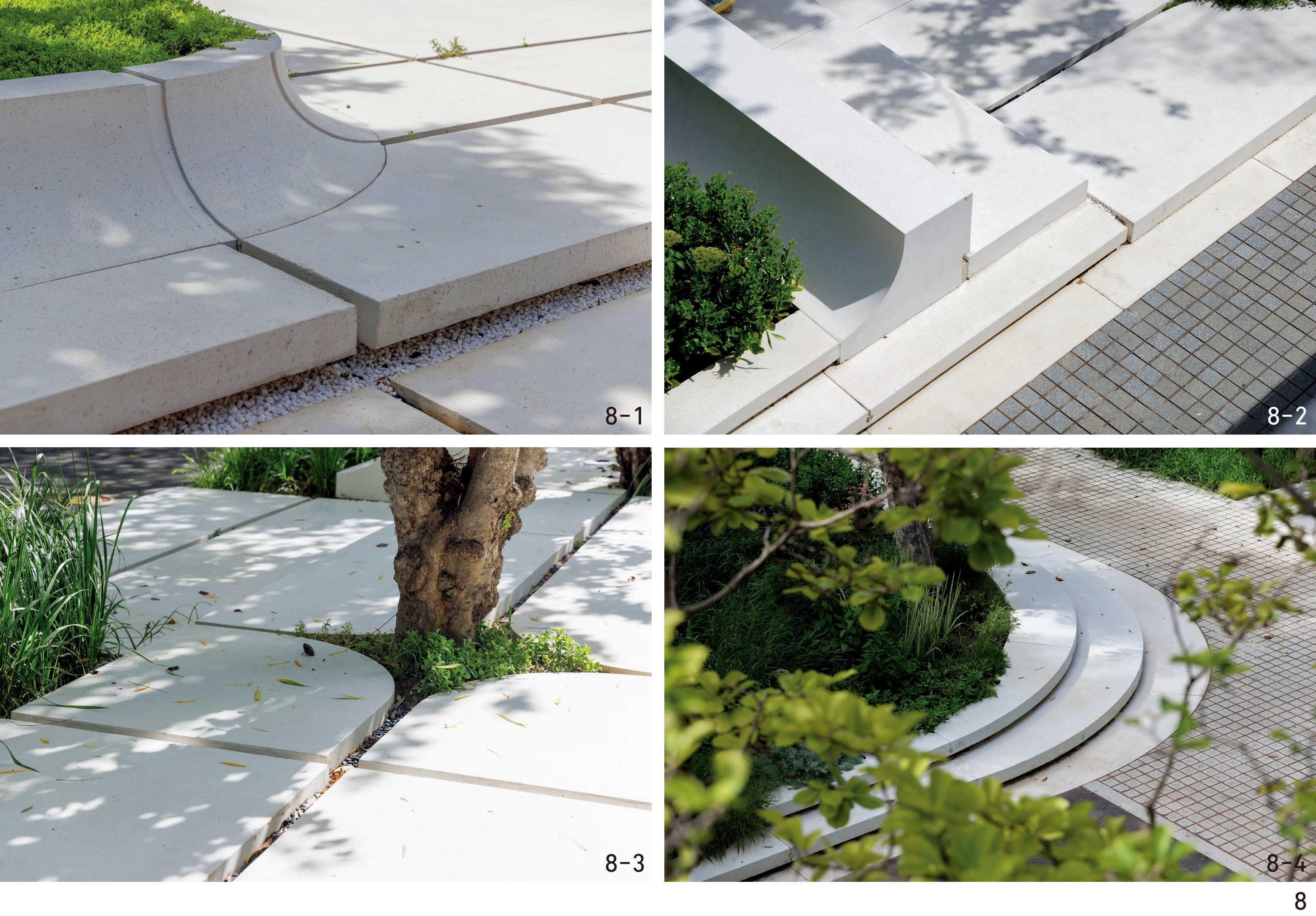 “玉兰花瓣”概念的造型预制混凝土汀步落到场地当中