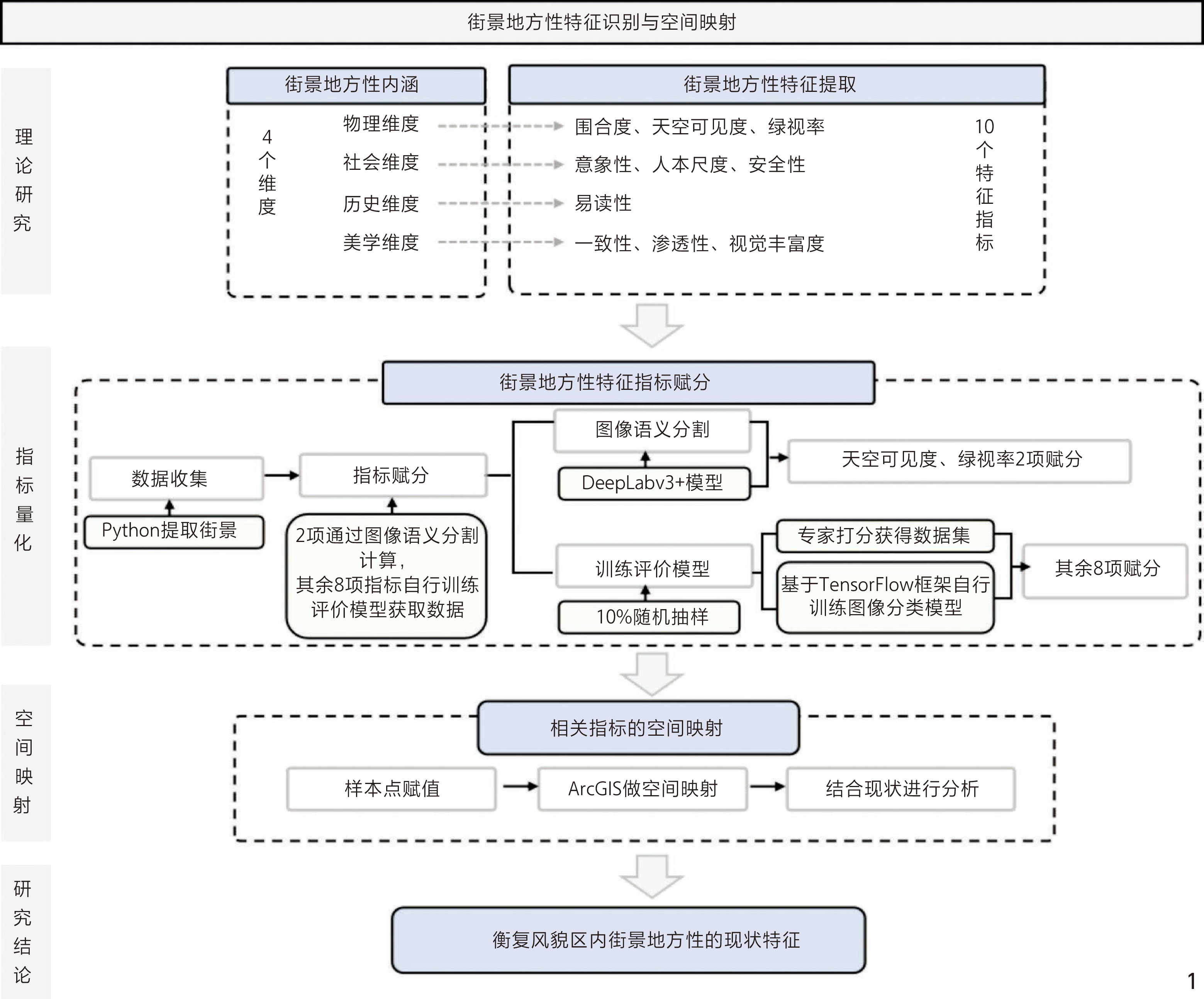 | 社会维度 | 意象性 | 描述街景的可识别性和可记忆性,受物理特征、人们的心理感知和社会文化因素等综合影响[43] |