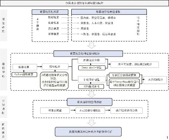 [Methods] This research first establishes a theoretic framework for streetscape locality through a discussion based on literature reviewed. The research proposes that streetscape locality should include the physical, social, historical and aesthetic aspects, with relevant indicators being identified for the four aspects respectively. These indicators are then compared with streetscape characteristics that can be measured by current image analysis technologies. On this basis, a framework for identification of streetscape locality is constructed. Taking Shanghai Hengfu Historic and Cultural Preservation Area (hereinafter referred to as the “Area”) as an example, the research adopts the semantic segmentation method and an AI-based evaluation model to analyze the locality of the Area, with the specific process being visualized using the Geographic Information System (GIS). The current spatial expression of streetscape locality characteristics in the Area is then discussed considering factors such as land use on both sides of a street, architectural styles, and traffic hierarchies.