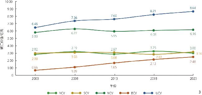 | 年份 | VCV占比/% | SCV占比/% | BCV占比/% |