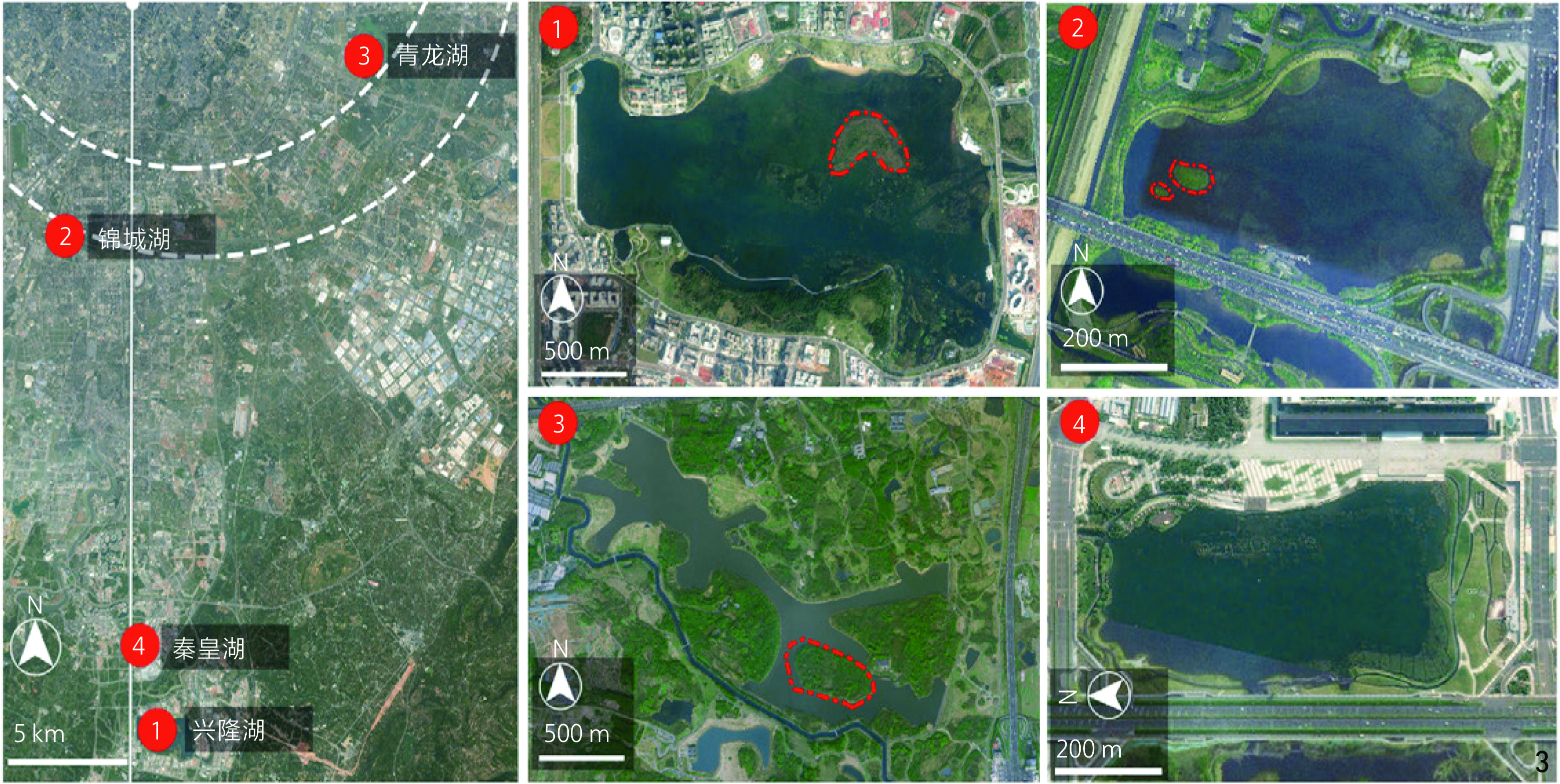 | 对照组 | 锦城湖 | 城市建成区 | 人工湖 | 2013年 | 21.6 | 3.0 | Ⅱ类 | 94.8 | 2 380 | 250 | 否 |
