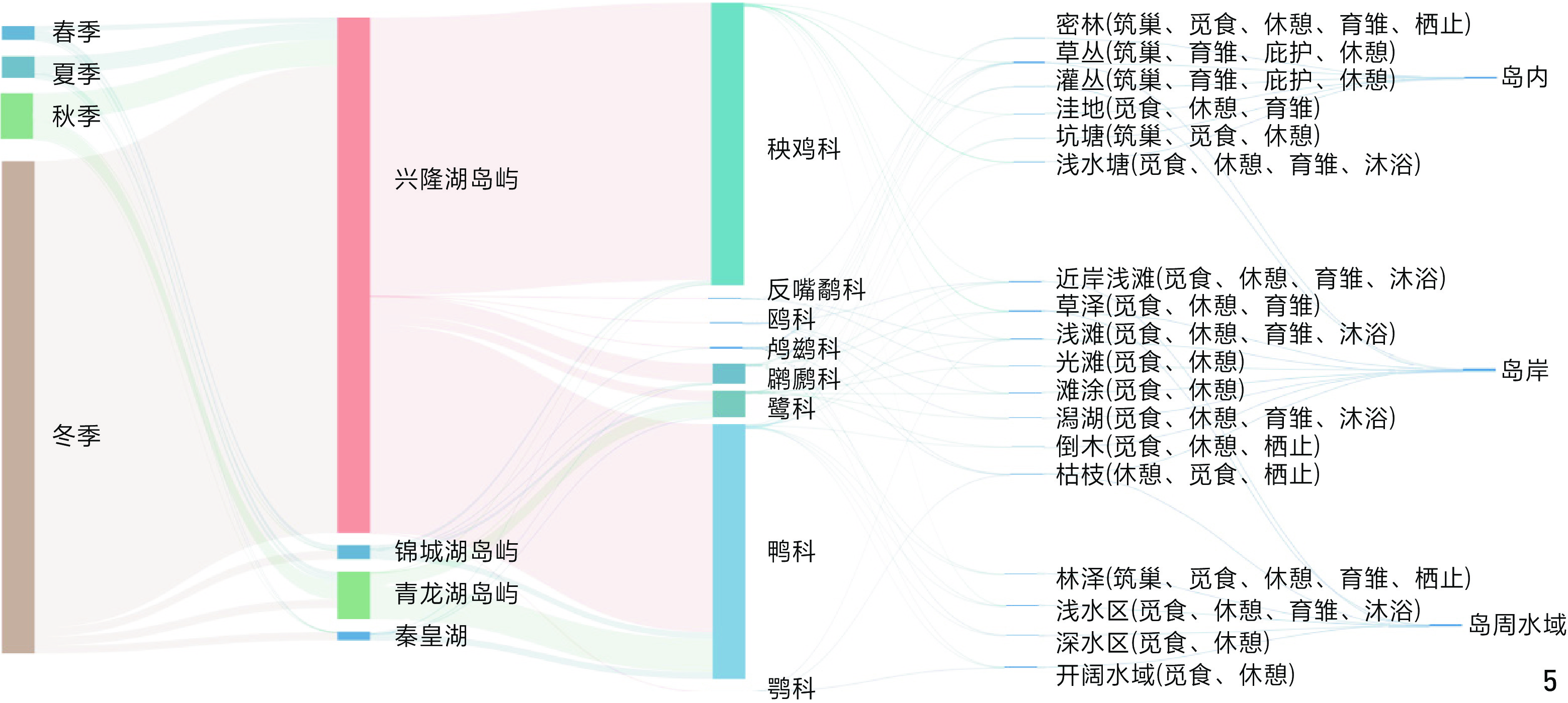 表4 研究区域水鸟种类、数量及留居型Table 4 Waterbird species, quantity and residency type in the research area |