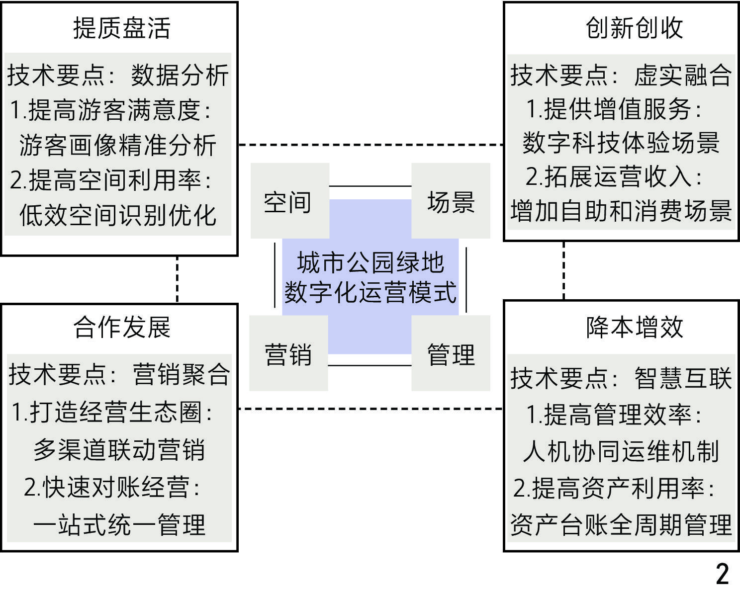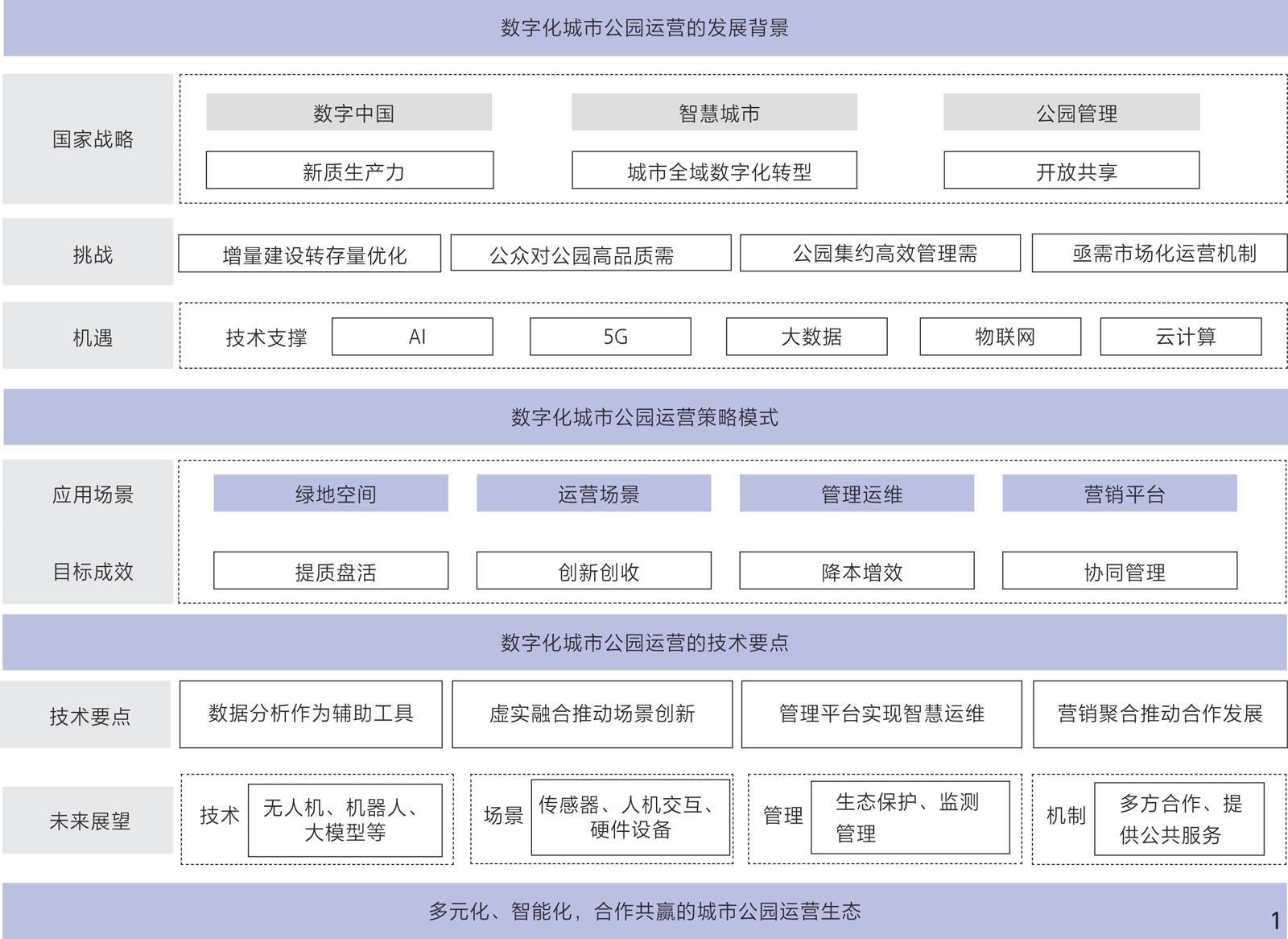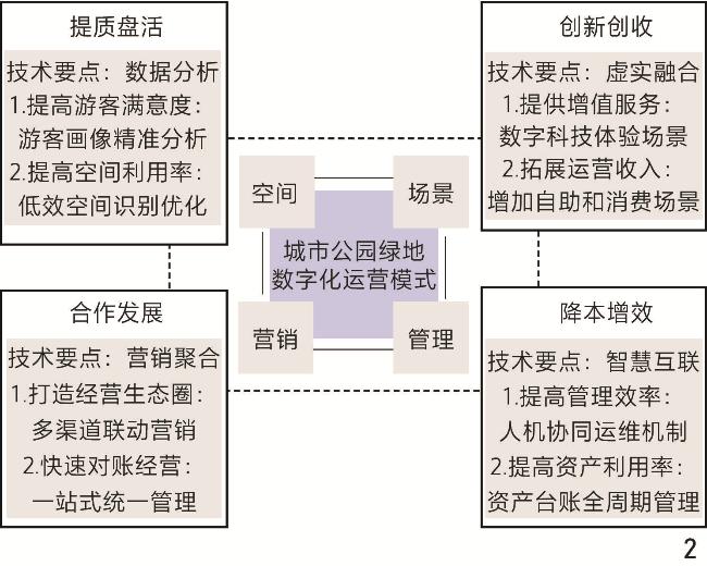 [Objective] As an important urban public open space, park green spaces bear multiple social functions such as ecology, recreation, and culture. Park services are evolving from being low-frequency and periodic to high-frequency and all-day, giving rise to the urgent need of the public for high-quality and diversified services. However, as a public welfare product, parks have long relied on government financial investment for operation and maintenance, and this traditional operation and maintenance mode exposes deep-seated contradictions of insufficient sustainability under the dual constraints of the downward economic pressure and the rising maintenance costs. This leads to an increasingly prominent contradiction between public demand and operation management. Therefore, against the backdrop of China’s encouragement of the open sharing of urban park green spaces, it is particularly important in the current economic situation to consider how to make better use of digital technologies such as artificial intelligence (AI), Internet of Things (IoT), and big data (BD) to empower the operation of park green spaces, further revitalize the advantageous resources of parks, promote the transformation of parks from “extensive management” to “precise services”, and enhance the “self-sustaining” function of parks through operation. Thus, this research focuses on the operational mode and implementation path of empowering the operation of urban park green spaces by digital technology, with the aim of providing scientific guidance for the future operation practice of park green spaces. [Methods/process] Space, scenario, management, and marketing are the four core elements of the operation of park green spaces. Space, as the physical carrier of operation, provides a place for people’s activities in parks; scenario focuses on the feelings and experiences of tourists in parks and is related to tourists’ satisfaction with parks; management covers the cost input of various resources in the operation process and plays a key role in the economic benefits of park operation; marketing involves the online and offline business operation logic of parks and directly affects the commercial revenue and market influence of parks. [Results/conclusion] Therefore, this research focuses on the above four aspects and divides the operational mode for empowerment by digital technology into the improvement and revitalization of green space, the creation of innovative consumption scenarios, the reduction of operation and maintenance costs and improvement of efficiency, and the improvement of unified revenue and expenditure in marketing. 1) Data-driven improvement and revitalization of space. Through the data-driven mode, accurately identify the inefficiently utilized space and potential demand gaps, and thus formulate targeted transformation strategies to achieve the coordinated improvement of tourists’ needs and space utilization efficiency. 2) Innovative experience in operation scenarios. Digital technology can help reconstruct the logic of scenario experience and consumption mode and. through immersive experience value addition and service efficiency enhancement, activate the integration of the functions and commercial value of park green spaces. 3) Cost reduction and efficiency improvement in operation and maintenance management. Through digital technologies such as AI, Large Language Model, and Big Data, improve the unmanned and automated level of the whole process of environmental event response, resource ledger management, and personnel scheduling to achieve cost reduction and efficiency improvement in park operation. 4) “Online + offline” coordinated management in marketing and operation. Based on data-driven construction of an “online + offline” integrated marketing management mode, through precise reach, business format linkage, and integration of digital platforms, achieve the optimization of tourists’ experience and the improvement of the commercial closed-loop efficiency, ultimately reducing costs and increasing revenue. Based on the above, four specific technical points for implementing the operational mode in reality are proposed as follows. 1) Multi-source data as an auxiliary tool for constructing accurate tourist portraits and optimizing space. Use data to complete the identification of tourists’ needs, diagnosis of inefficient spaces, and optimization and revitalization. 2) Integration of virtuality and reality to promote innovative operation scenarios. Digital technology can realize the immersive experience of integrating virtual and real scenarios, improve the cultural, ecological, and artistic values of parks, make the commercial operation lightweight by means of self-service and upgrading of consumption conversion efficiency, and thus construct a sustainable closed loop of revenue. 3) Construction of a management platform to achieve intelligent operation and maintenance. Through the construction of IoT foundation, data middle platform, and AI-driven platform intelligent agent, achieve intelligent operation and maintenance of parks. 4) Aggregation of traffic and integration of data to enhance operation efficiency. Vertically integrate consumption scenarios in depth, connect court services, equipment rental, and healthy catering support with the sports consumption chain, and connect outdoor science education, natural practice classes, and theme derivatives development with the parent – child consumption chain; besides, horizontally expand cross-domain cooperation, jointly build a ticket intercommunication and point conversion system with surrounding scenic spots and commercial entities, and activate the regional consumption synergy effect.
