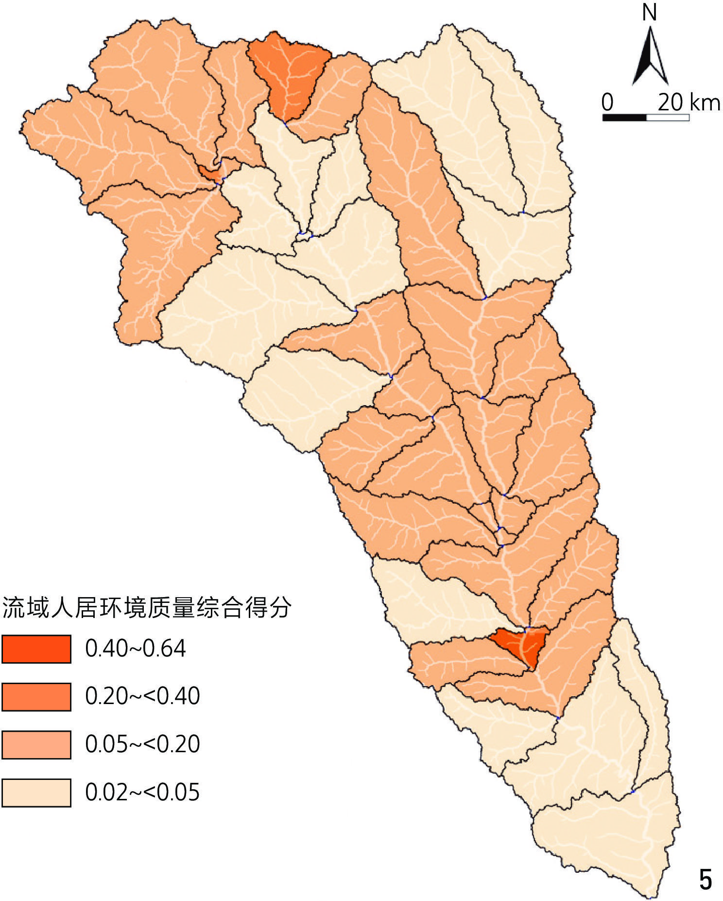 | 流域人居环境质量 | 人居生活 质量 | 交通可达性 | 正向 | km/km2 | 子流域内道路长度与流域面积的比值 |