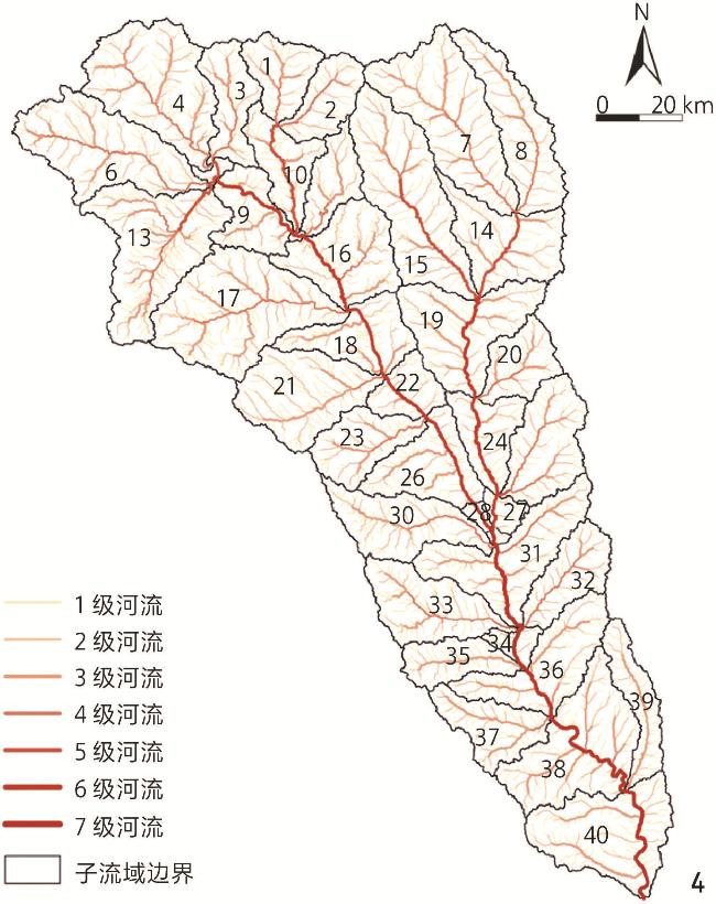 | 平均起伏度(X19) | m | 各子流域最大高程值和最小高程值的差值,反映了地势起伏特征 |