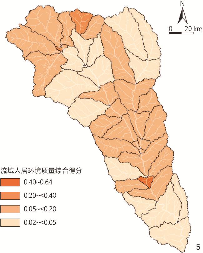 表2 流域人居环境质量的影响因子Tab. 2 Factors influencing the quality of human settlement environment in the Basin |