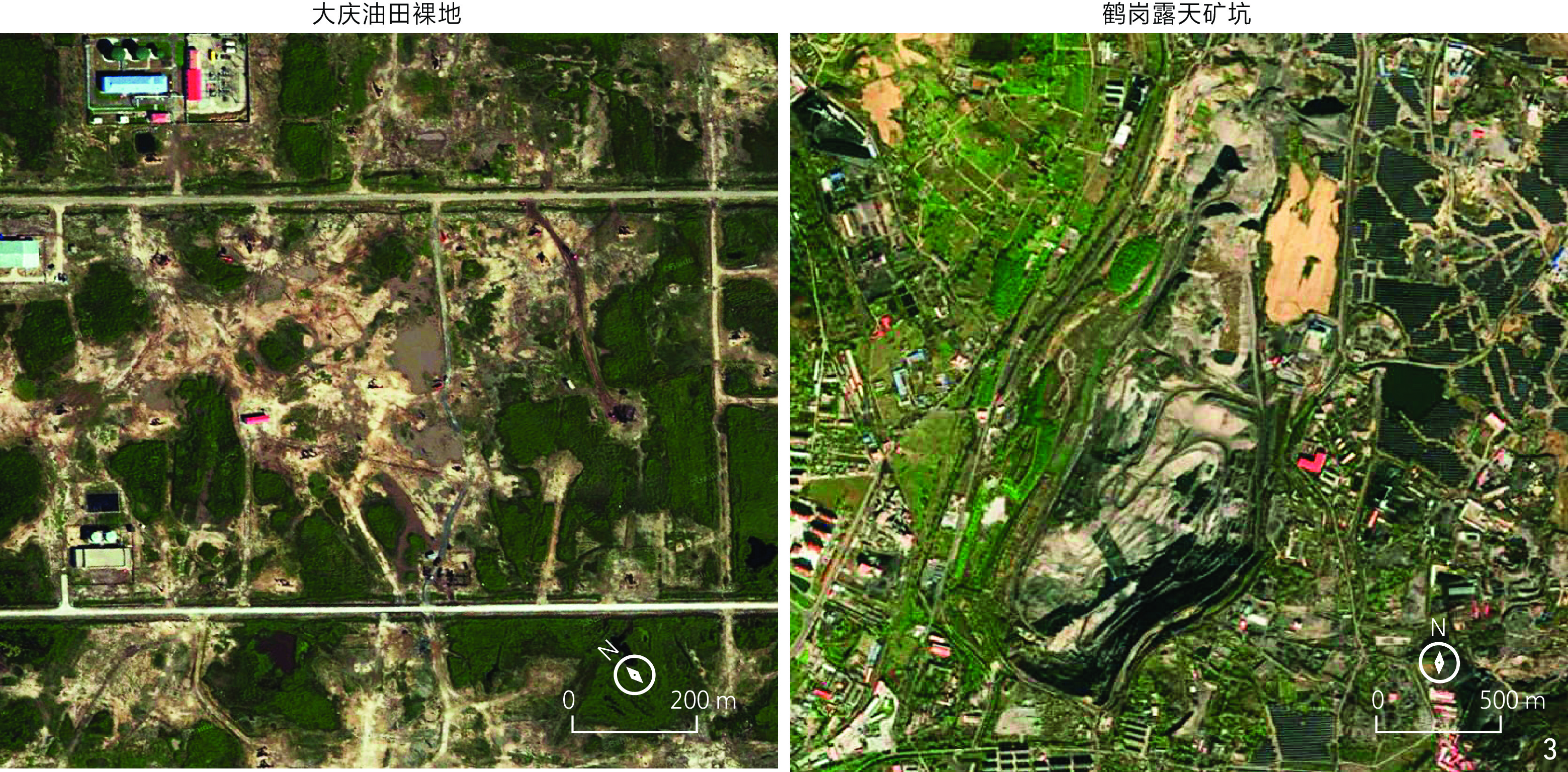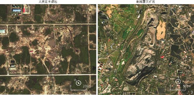 图3 2023年大庆油田裸地及鹤岗露天矿坑Fig. 3 Bare land in Daqing Oilfield and open-pit mines in Hegang in 2023 |