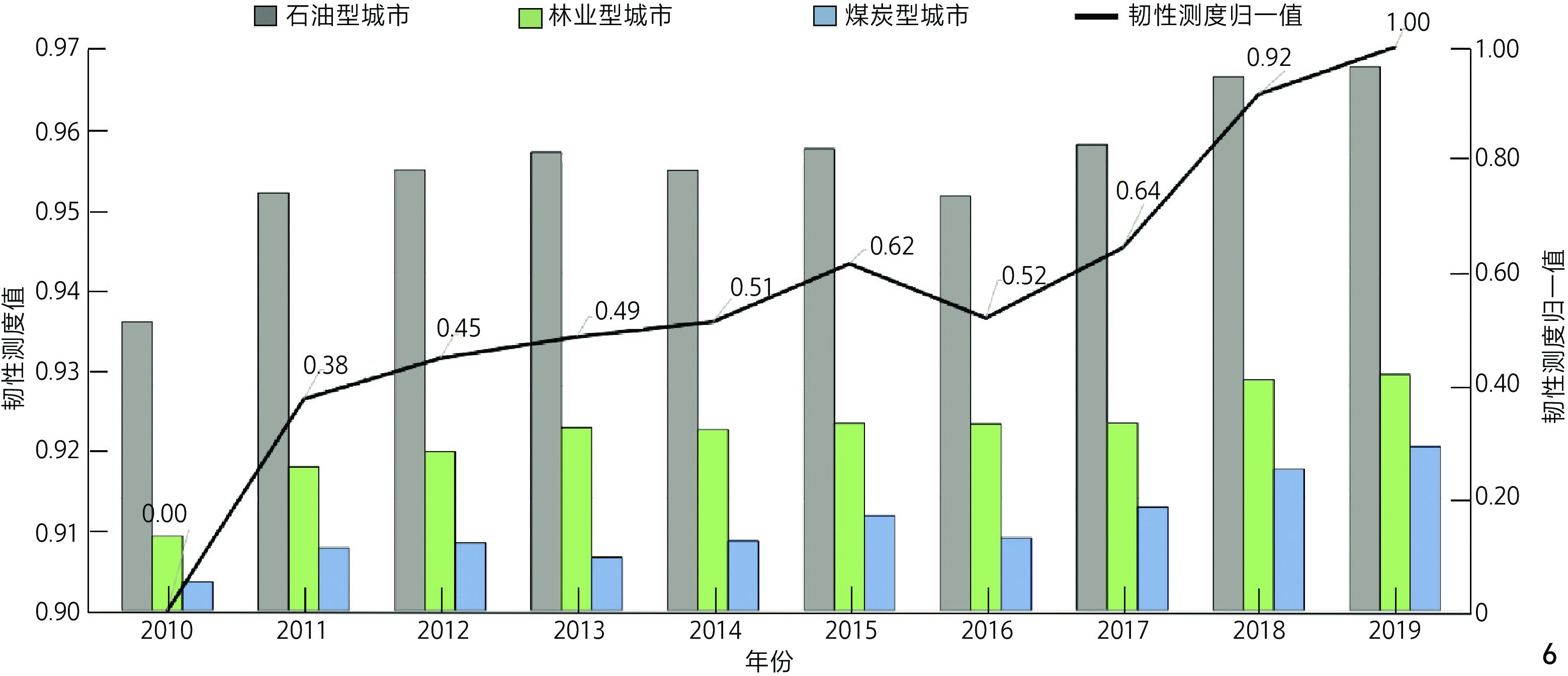 | 经济下行态势明显 | 2010—2019年,石油型城市GDP增速由10.1%下降至3.54%,林业型城市平均GDP增速由18.5%下降至4.85%,煤炭型城市平均GDP增速由19.35%下降至5.12% |