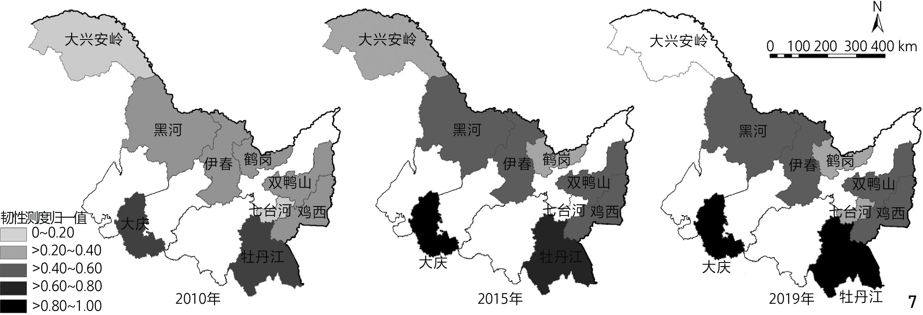 [Objective] Resource-based cities in Heilongjiang Province have encountered a series of challenges during their transformation, including resource depletion, industrial decline, environmental pollution, and population outflow. These issues stem from historical over-exploitation of resources, outdated processing methods, insufficient socioeconomic reforms, and the dominance of single-resource industrial structures. In the context of sustainable development transformation, these cities face intertwined complexities of historical legacies and emerging challenges. From the perspective of evolutionary resilience, urban resilience is defined as the capacity of the urban system to resist, transform, and adapt to risks. By adopting adaptive planning strategies and dynamic evolutionary approaches aligned with urban system development laws, cities can shift from “outcome-oriented” to “process-oriented” frameworks, offering novel pathways for sustainable transformation. However, leveraging resilience pathways to address developmental bottlenecks and deepen sustainability remains a critical research gap requiring further exploration.