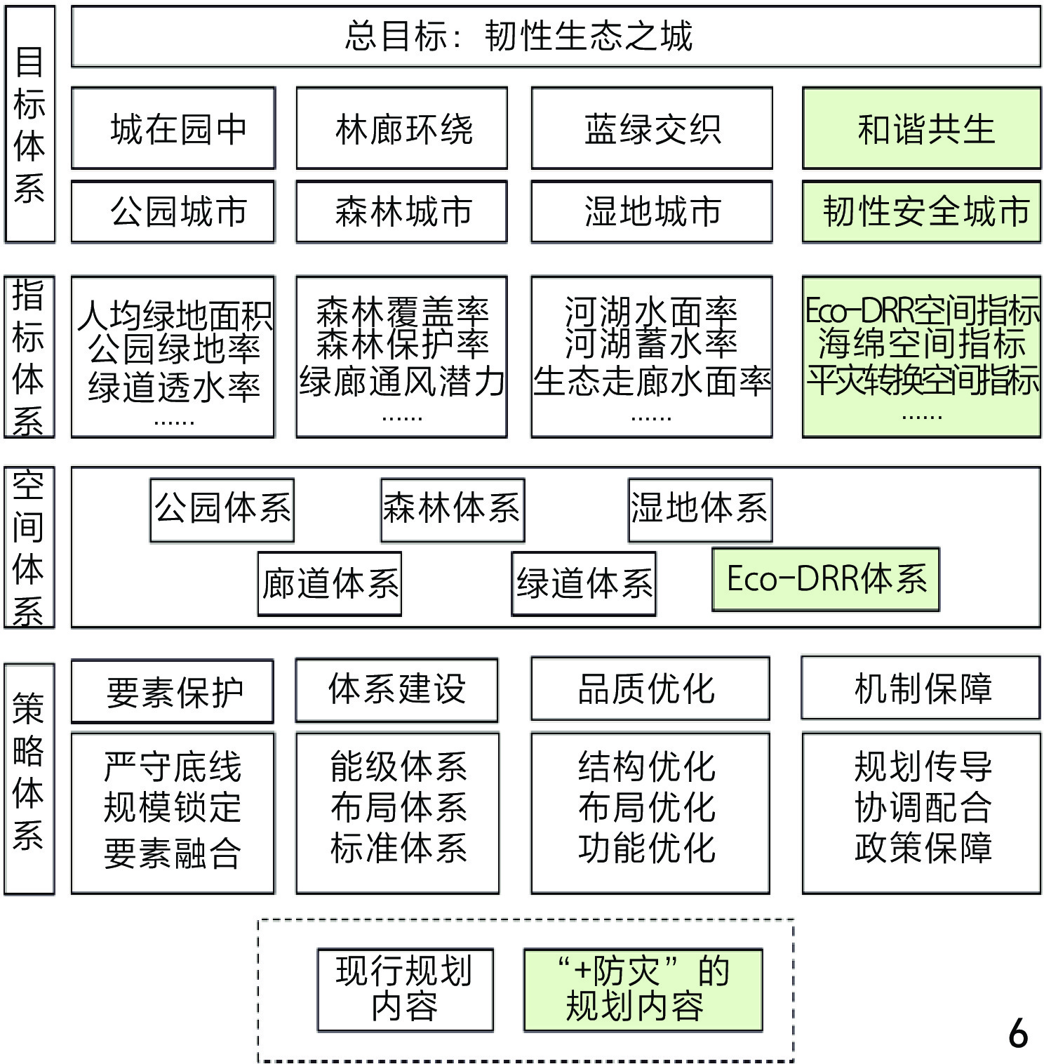 | 支撑体系 | Eco-DRR空间指标 | 海绵空间指标 | 降温空间指标 | 平灾转换空间指标 |