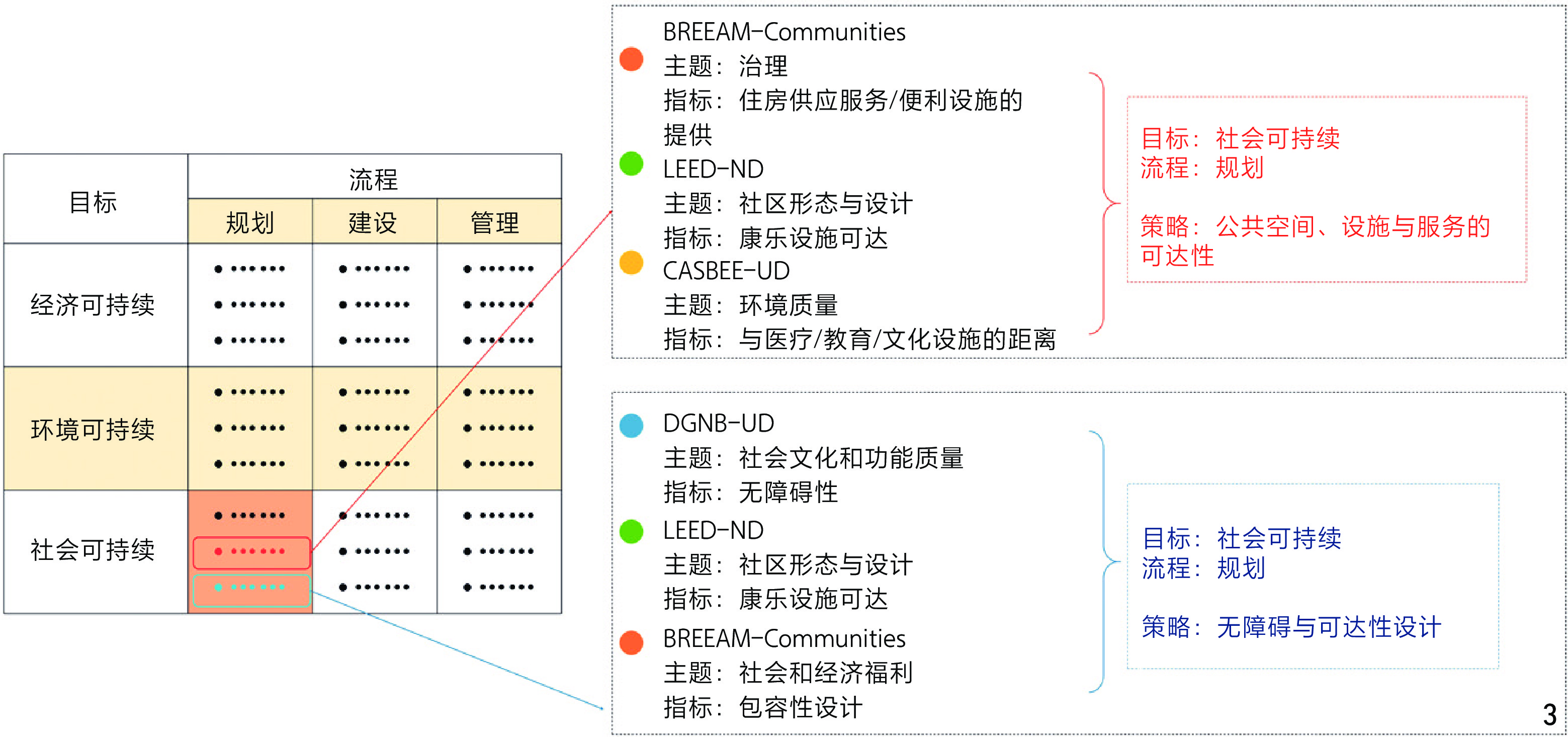 | 注:1代表该策略内容来源于CASBEE-UD;2代表该策略内容来源于LEED-ND;3代表该策略内容来源于DGNB;4代表该策略内容来源于BREEAM-Communities。 | |||