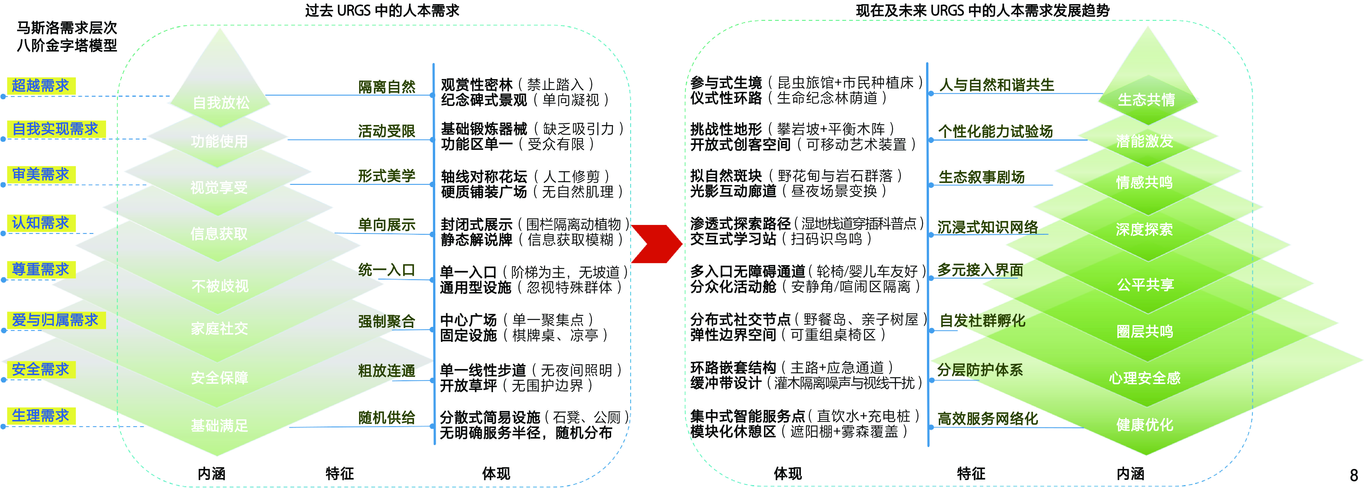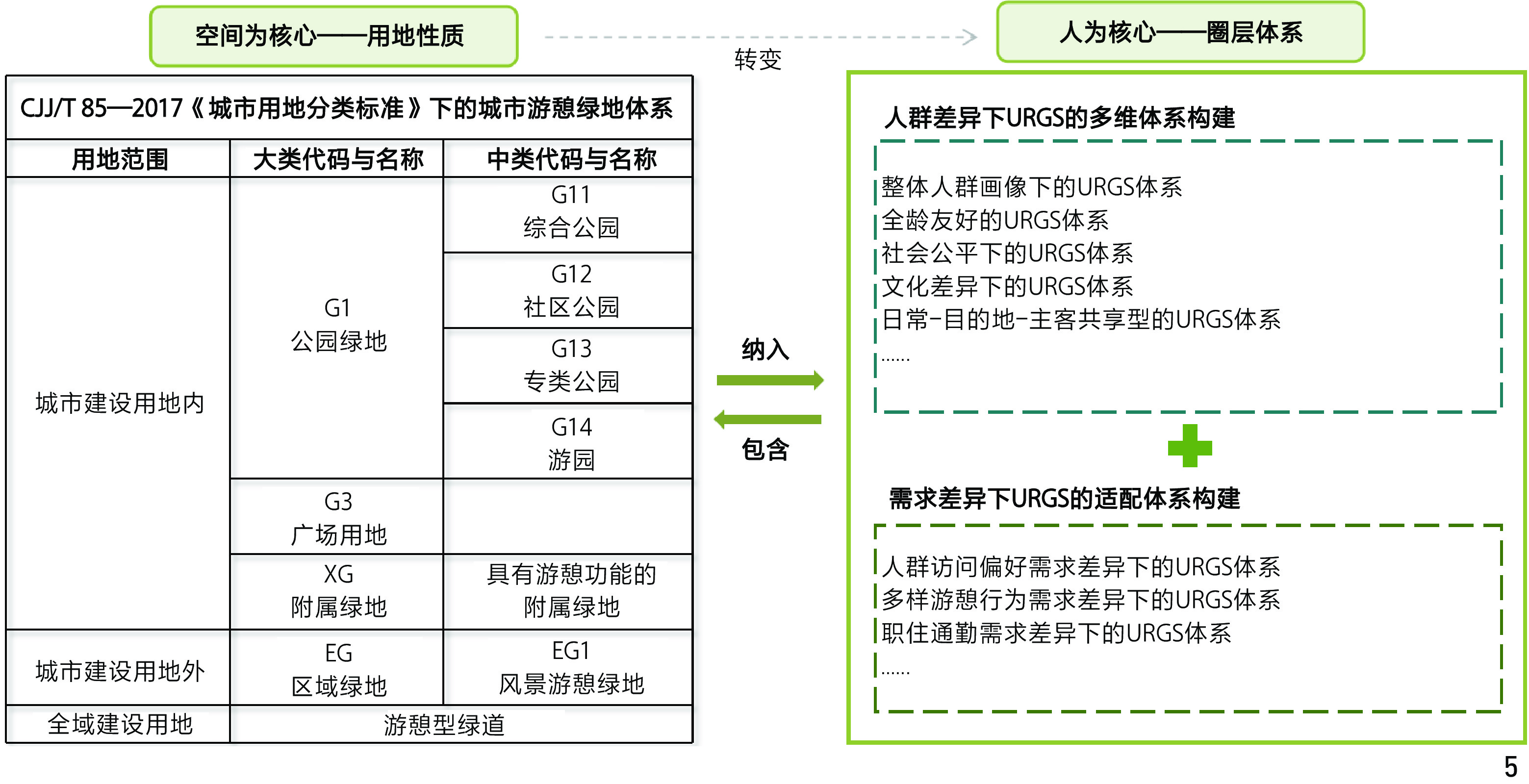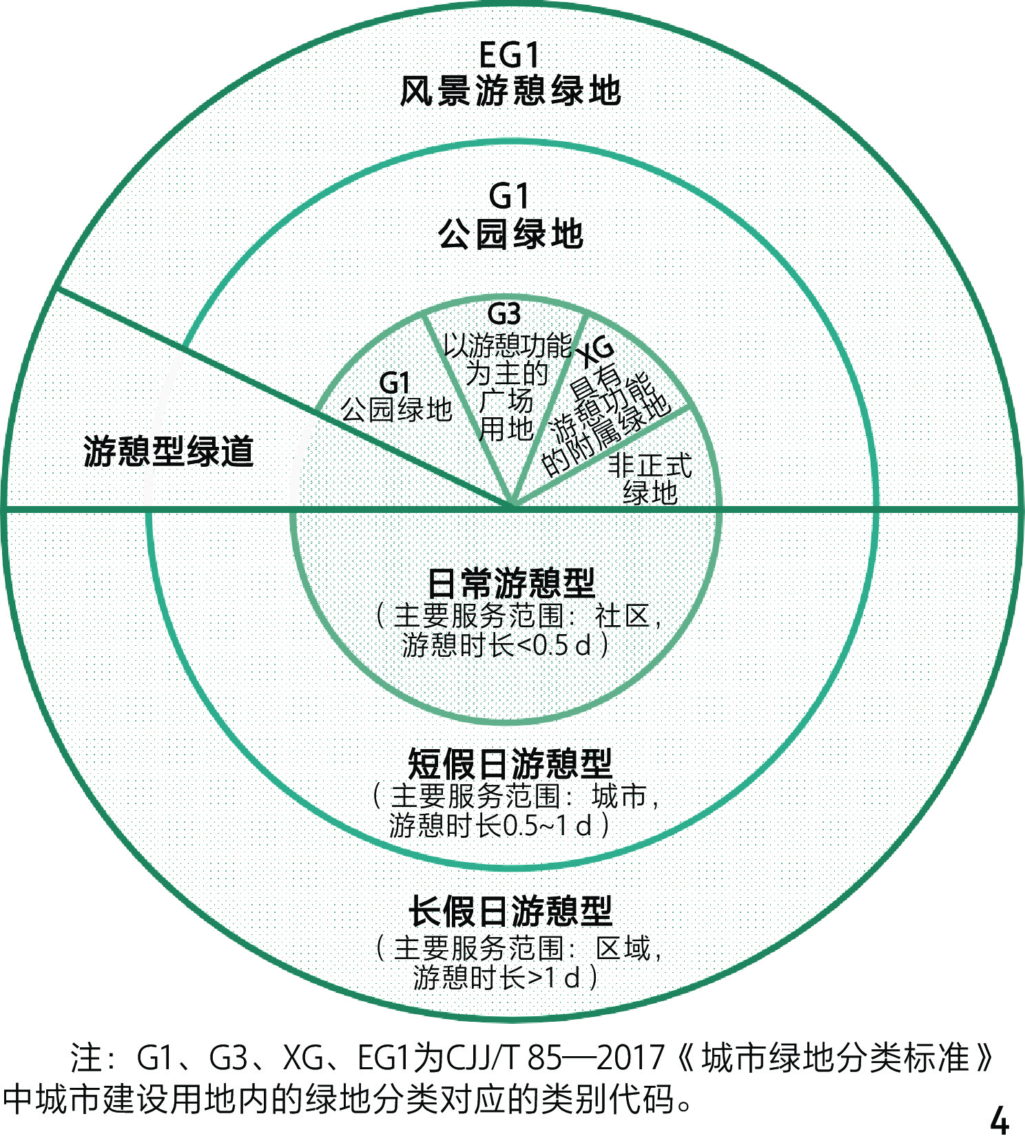| 游憩服务层级性 | 游憩型绿地分级与分类(服务范围、游憩时间、主题类型等) |