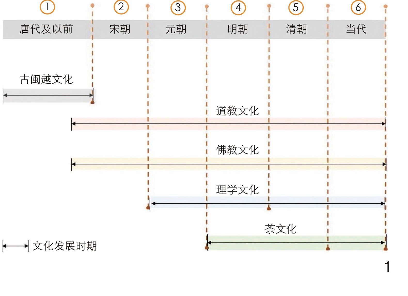 | 文化类 | 景观结构 | 沿线规则平地式宋清茶园、组团式明清佛寺、组团式宋代理学祠堂及石刻、组团式宋代茶文化遗址及纪念建筑、沿线式清代佛寺及石刻、规则阶梯式当代茶园、沿线式宋明道教古闽越遗址等 | |