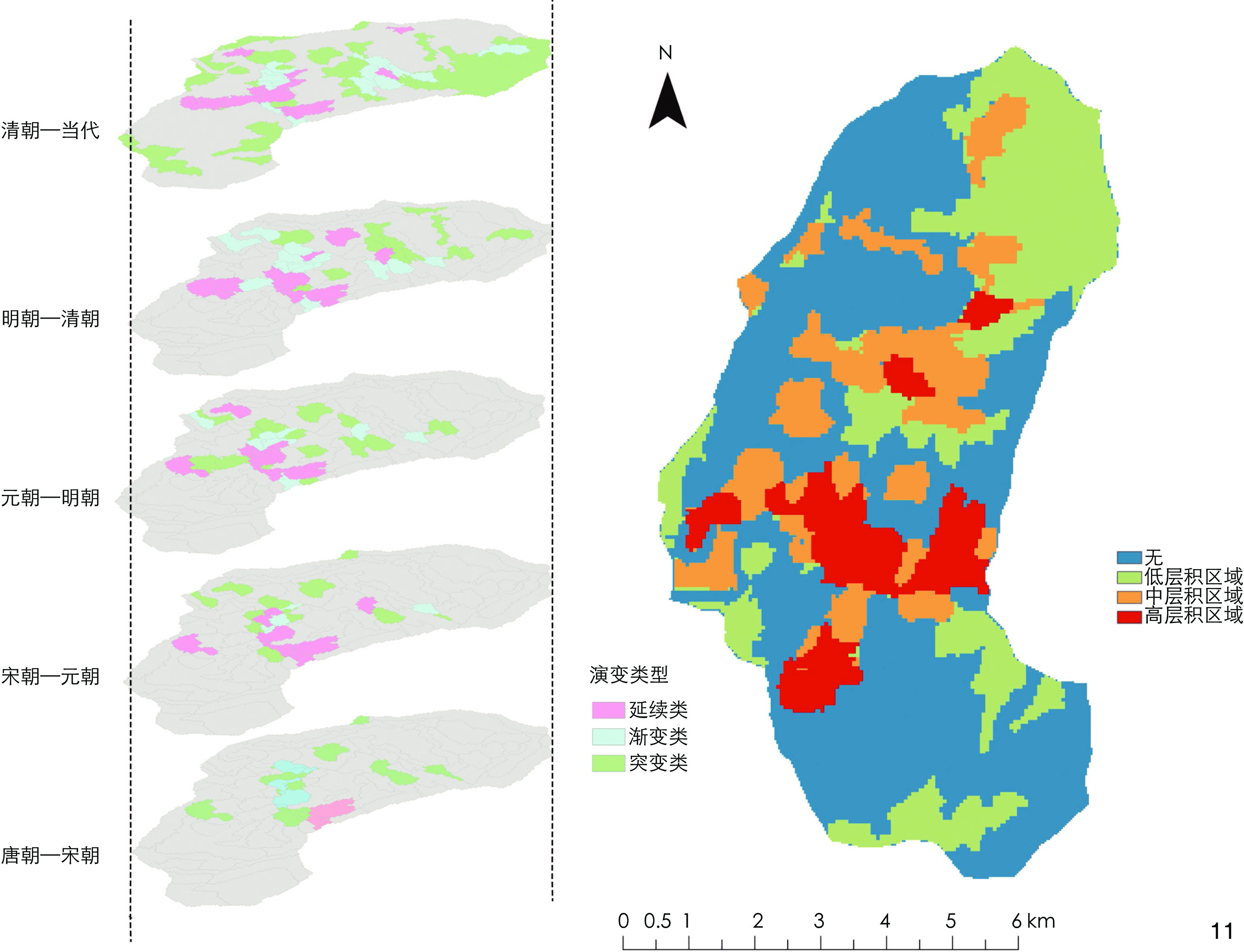 表6 研究区域文化景观高层积区域空间格局Tab. 6 Spatial pattern of high-stratification area of cultural landscape in research area |
