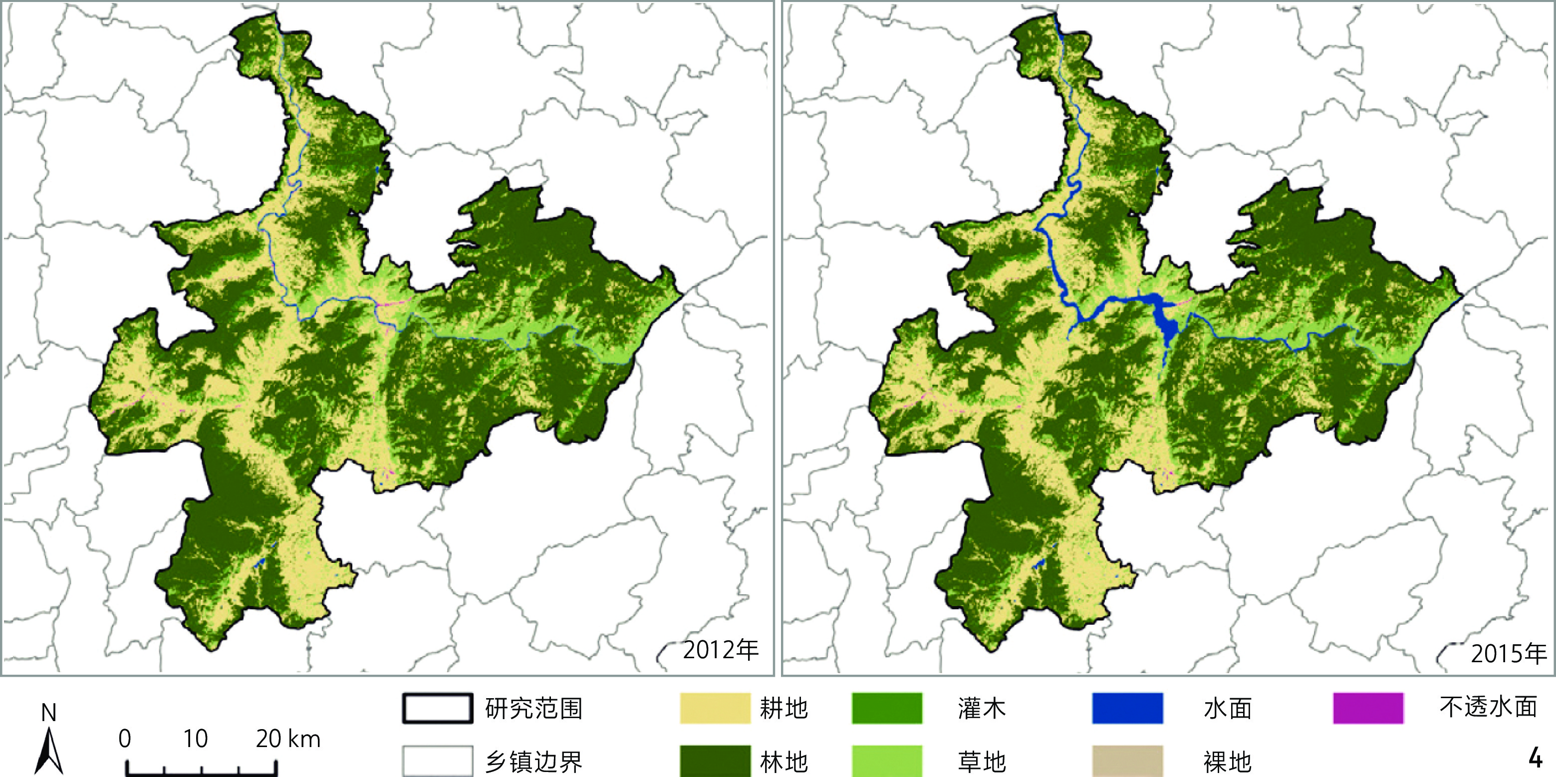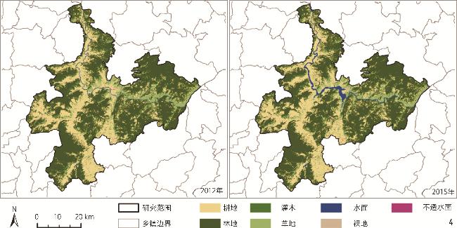 表3 移民前后驱动因子对各类土地利用变化贡献度差异Tab. 3 Differences in the contribution of driving factors to various land use changes before and after resettlement |