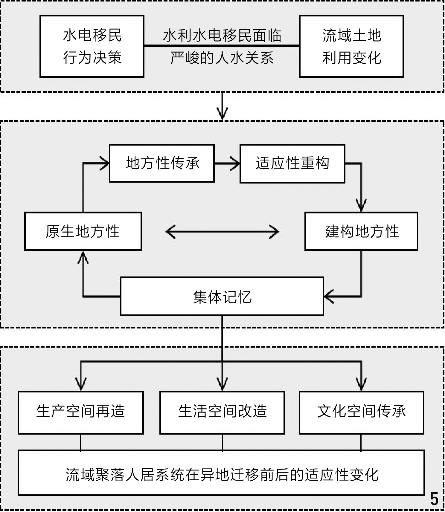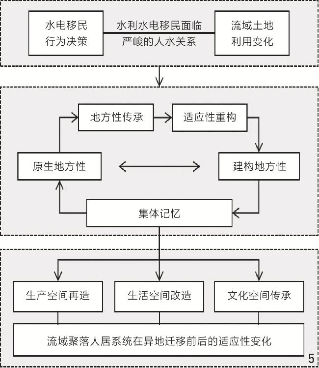 Objective Within human – environment systems, river basins constitute the earliest geographical units of human activity and currently represent the most critical zones of strained human – environment interactions. Facing the prominent and complex contradictions in basin-scale human – environment relationships, the evolution and coupling mechanisms of human – water dynamics have emerged as pivotal research issue. With technological advancements, early humans continuously shaped the earth’s surface through hydraulic facilities such as canals, dams, and embankments, directly intervening in human – water relationships. Since the modern era, large-scale hydraulic and hydropower projects have significantly enhanced the capacity of basin settlements to utilize water resources and hydropower, strengthened resilience against water-related disasters, generated extensive socio-economic and ecological benefits, and altered the productive – ecological coupling relationships of settlements. In this process, the uniqueness of hydropower resettlement lies in the radical restructuring of human – water relationships — transformations that not only reconfigure physical spaces but also fragment basin-rooted local knowledge networks. This research evaluates the compound impacts of hydraulic and hydropower projects on basin-scale human – environment systems, focusing on the adaptive challenges faced by hydropower resettlers under abrupt environmental changes. By constructing a “locality – adaptation” conservation framework, the research reveals how resettlers rebalance local elements through adaptive strategies such as selective preservation, innovative transformation, and memory-driven reconstruction in newly constructed environments. Methods As a typical scenario of abrupt changes in social – ecological systems, the environmental shocks experienced by relocated settlements provide a natural experimental setting for studying human habitat adaptability. This research takes the resettlement communities of the Ludila Hydropower Station along the Jinsha River as the research object, and develops a linkage analysis method that integrates macroscopic land cover evolution with microscopic architectural spatial adjustments. By connecting the drastic environmental effects at the basin level with human behavioral responses at the settlement level, the research visually demonstrates how hydropower projects trigger residential space reconstruction through land resource constraints. At the basin scale, the Patch-level Land Use Simulation Model (PLUS) is employed to analyze land use adaptation changes in the basin during two phases: 2005 –2010 (pre-resettlement period) and 2015 –2020 (post-resettlement period). At the settlement scale, the Mask Region-based Convolutional Neural Network (Mask R-CNN) deep learning model is utilized to identify architectural spatial features, categorizing three typical building types: traditional pitched-roof buildings, uniformly planned flat-roof buildings, and color steel plate-modified structures. Through multi-source data fusion (including remote sensing, demographic statistics, and compensation records) and field investigations, the research quantitatively analyzes the “locality – adaptation” reconstruction process of resettlement communities across the three spatial dimensions of living, production, and cultural spaces. Results 1) Land cover evolution: Water storage of hydropower station inundates 37.12 km2 of land (including 21.61 km² of high-quality cultivated land), resulting in a loss of 43.68% of settlement production space. 2) Adjustment of architectural space: 65.8% of dwellings in the original villages are traditional timber-earth buildings with a tile roof, which adapt to the climate environment of concentrated rainfall and sufficient sunshine in the Jinsha River Basin. 48.7% of the resettlement sites adopt unified flat roof planning, and 51.3% realize functional optimization through self-construction or renovation, with the average renovation area reaching 230.9 m2. 3) Transformation of livelihood system: The annual compensation mechanism only restores 15.79% of the cultivated land allocation before resettlement, and the proportion of compensation income drops from 82.71% in the initial stage of relocation to 33.15% after long-term resettlement, driving the adjustment of crop structure to high value-added cash crops. 4) Cultural space reconstruction: In the context of the disappearance of traditional water transport functions, the three cultural relics reconstructed in different places show a symbolic turn. Among them, Taoyuan Longwang Temple fully retains the original worship function (retention rate is 100%) and forms a functional complement with the new water supply system of Dalongtan Reservoir (replacing the function of 90% of the inundated irrigation area). The local maintenance of cultural space essentially depends on the dual continuation of the functional bearing and symbolic meaning of the relationship between human and water. Conclusion The hydropower settlement forms a systematic response mechanism in the “production – living – culture” dimensions through the adaptive reconstruction of local elements. The living space is translated into climate adaptability by unified planning and construction, and the building renovation rate reaches 73.3%; reservoir inundation results in the loss of 43.68% of high-quality cultivated land, driving the migration of farming space to the middle-high altitude area (the slope demand for forest land development increases by 26.96%), and forming a spatial replacement mechanism of “inundation loss – slope compensation”; the cultural space retains locality through function transformation and symbols of water culture reconstruction. While revealing the rigid constraints of engineering intervention on the natural environment, the research systematically explains the dynamic balance proces