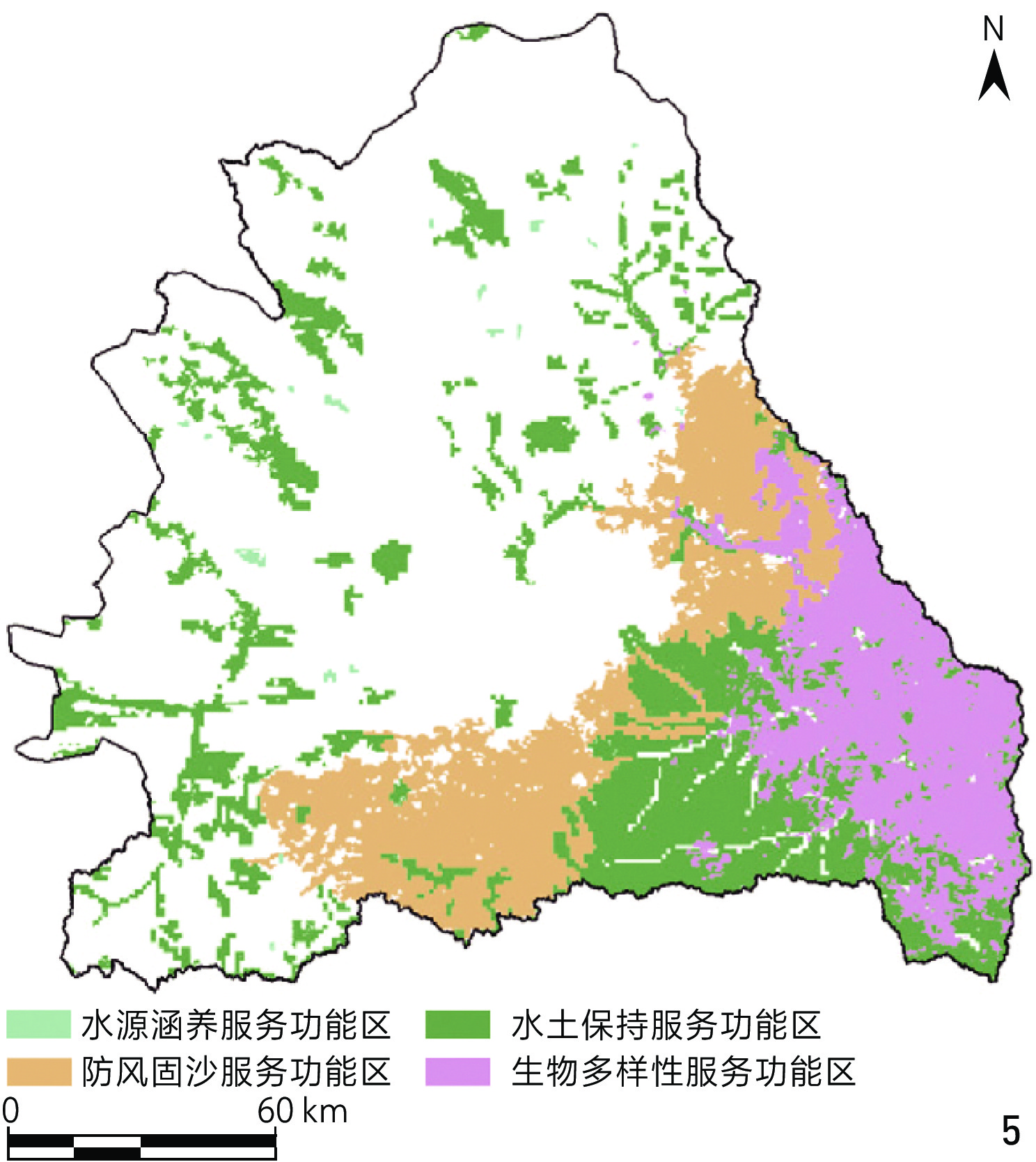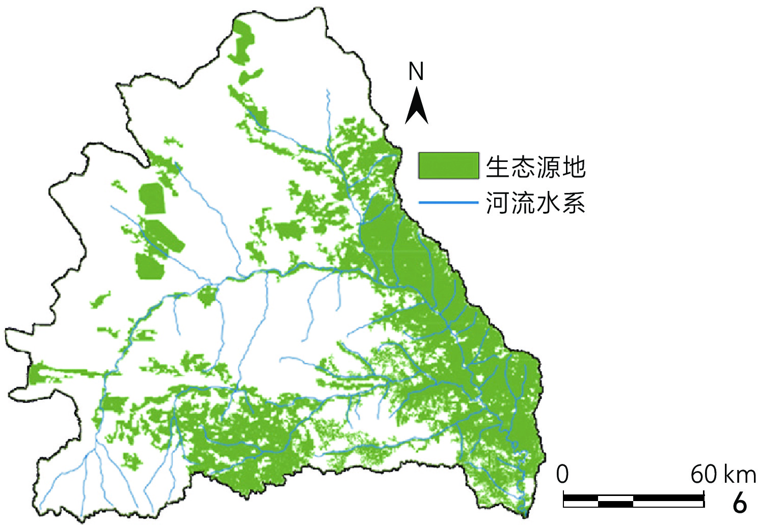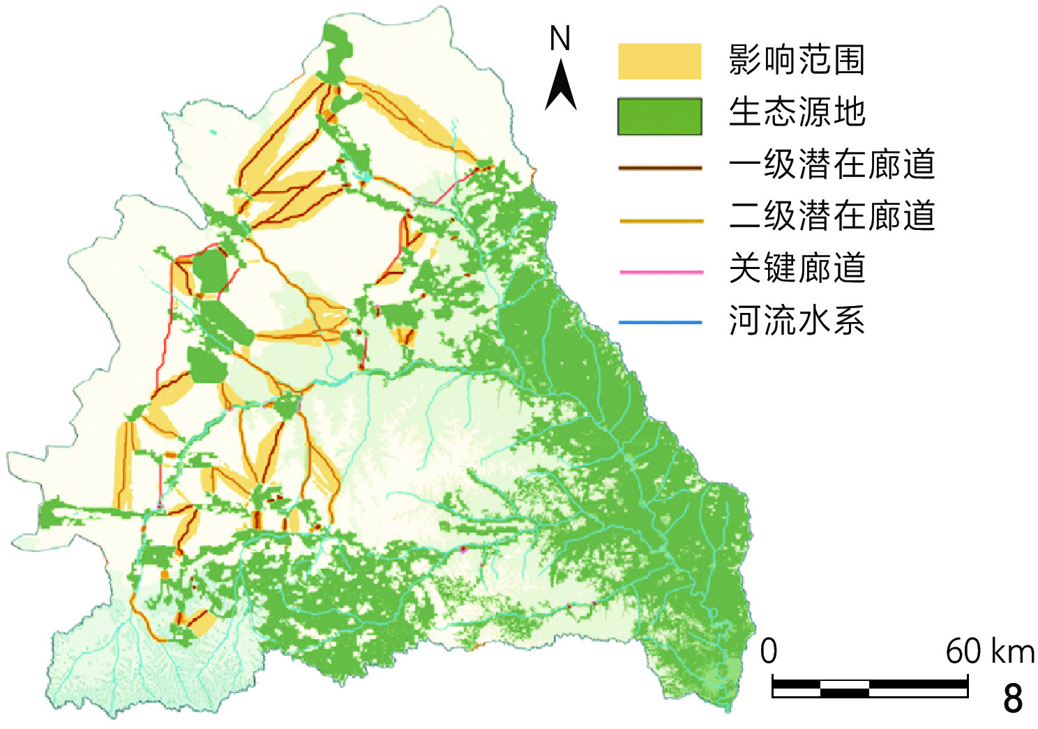 Objective The Wuding River is a key tributary of the middle reaches of the Yellow River, and the Wuding River Basin has undergone rapid urban and township expansion since 1998, leading to increased fragmentation of its human settlement ecosystem. Over the past two decades, growing ecological concerns in the Yellow River Basin have driven extensive restoration efforts in the Wuding River Basin. While large-scale interventions have achieved notable results, sustaining these improvements remains a challenge. Given the basin’s fragile ecological environment, many existing projects fail to generate lasting cumulative effects, limiting their long-term impact. This research aims to develop an ecological security pattern for human settlements in the Wuding River Basin, while identifying critical ecological resources, corridors, and key restoration nodes essential for biodiversity conservation. To overcome the limitations of conventional restoration approaches, the research proposes a hierarchical and targeted ecological restoration strategy tailored to the basin’s unique environmental conditions. The goal is to balance urban development with ecological protection, thereby optimizing the security and resilience of human settlement ecosystems. Methods This research follows a structured approach based on the formulation of strategy for construction and optimization of ecological security pattern. The ecological security pattern is developed in three key steps. First, the research identifies ecological source areas through a comprehensive assessment of four core ecosystem functions — water conservation, soil and water retention, windbreak and sand fixation, and biodiversity maintenance. The Morphological Spatial Pattern Analysis (MSPA) model is adopted to refine ecological source selection by incorporating landscape connectivity and spatial distribution characteristics. Based on this, the research maps ecological corridors and barriers by establishing a resistance evaluation system with 11 resistance factors and applying circuit theory to identify key spatial elements such as corridors, pinch points, and barriers, based on which a three-tiered “source – corridor – node” ecological security pattern is formed. Last but not the least, the research proposes a hierarchical restoration strategy: Point-scale restoration for ecological nodes, focusing on localized interventions; linear connectivity enhancement to strengthen corridor linkages and improve landscape connectivity; regional regulation at the ecosystem level to reinforce ecological functionality across larger spatial scales. Results In the Wuding River Basin, 32 ecological source areas have been identified, covering 9,533 km2 and accounting for 31.50% of the total basin area. These ecological sources are predominantly concentrated in the southeastern region, where arboreal forests play a crucial role in maintaining ecological functions. In contrast, the southwestern region exhibits a more fragmented distribution of ecological sources, highlighting the need for targeted restoration efforts to improve connectivity. A total of 82 ecological corridors have been mapped, including 8 key corridors and 74 potential corridors, spanning approximately 1,044.8 km. These corridors serve to link ecological source areas, thereby creating a networked spatial structure that follows a distinct pattern: Denser in the north and sparser in the south. The research also identifies 31 ecological pinch points and 49 ecological barriers, which exhibit similar spatial distribution trends. These features are closely linked to corridor connectivity and are primarily concentrated in the northwestern region, especially in areas that bridge corridors and ecological source areas. Based on the established ecological security pattern for human settlements, a three-tiered “point – line – plane” ecological restoration framework is proposed. This framework extends westward and northward from the southeastern region of the basin, forming a hierarchical and interconnected ecological spatial structure that strengthens ecosystem stability and enhances service functions. The primary ecological restoration axis follows the mainstem of the Wuding River, acting as the backbone of the ecological corridor network. Additionally, there are also two secondary restoration axes extending westward and northward, each reinforcing the overall stability of ecosystem services. Finally, the research delineates three distinct ecological restoration zones within the basin: Key Restoration Zones, which require immediate intervention; Ecological Enhancement Zones, aimed at strengthening ecological connectivity; Controlled Protection Zones, designated for conservation with minimal disturbance. Each zone follows a structured hierarchy of implementation, ensuring that restoration and conservation efforts are precisely targeted. This zoning strategy serves as a guide for spatial management, providing a clear framework for future ecological restoration initiatives. Conclusion This research explores the ecological security pattern for human settlements in the Wuding River Basin by developing an ecological security pattern centered on ecological sources, corridors, pinch points and barrier points. This framework identifies key ecological restoration areas, and a three-tiered “point – line – plane” restoration model is introduced, forming a comprehensive ecological restoration system that spatially represents the ecological security pattern. These findings help overcome the limitations of traditional restoration approaches, promote the rational allocation of resources, and provide a scientific foundation for regional ecological protection and restoration. However, this research primarily focuses on the basin scale, establishing a mesoscale ecological security pattern for human settlements. While the three-tiered restoration framework offers general guidance, restoration strategies at th