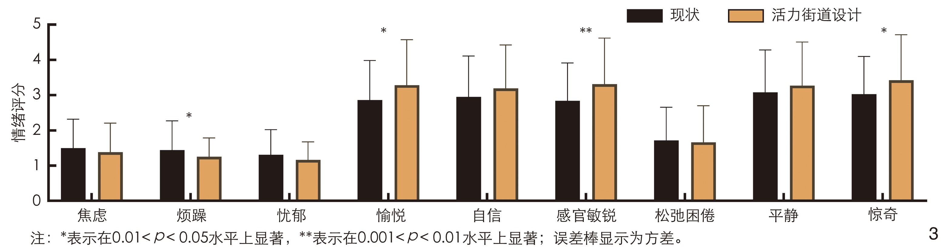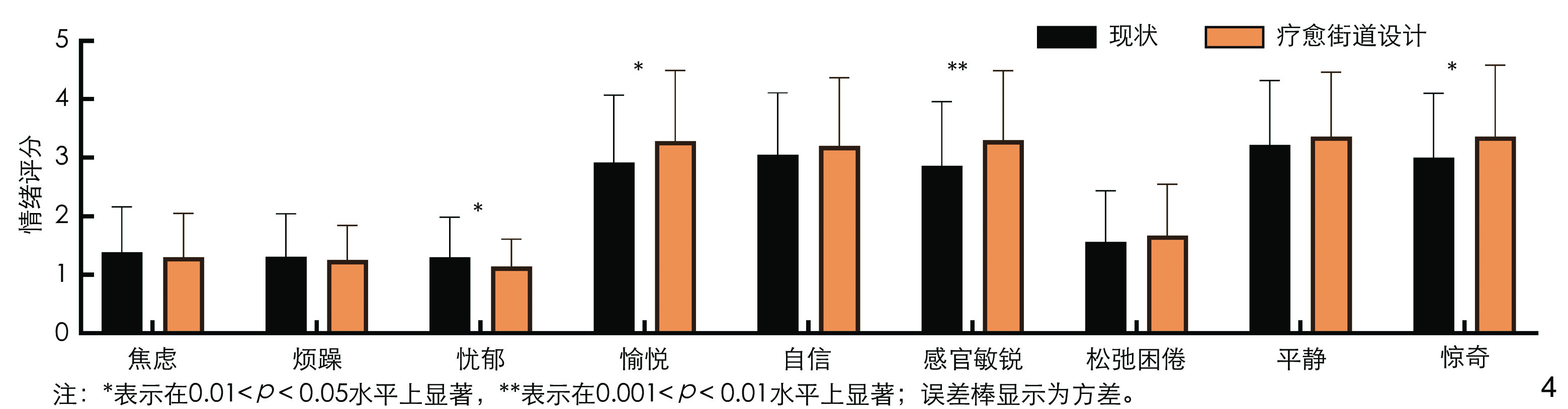 [Conclusion] The research provides empirical evidence for the different effects of “healing” and “vital” street atmospheres on emotions and provides a new reference for evidence-based design processes. In the current era, where there is a need for a more detailed transformation of urban construction models and people’s emotions require soothing in the post-pandemic era, designers should pay more attention to creating emotional atmospheres in urban spaces. Therefore, design practices aimed at accurately creating specific emotional atmospheres, theoretical and empirical reseach that can provide supporting evidence for the aforesaid aim, as well as methods and pathways for achieving this aim, should be given more attention by designers and researchers and become one of the focal points of their work.