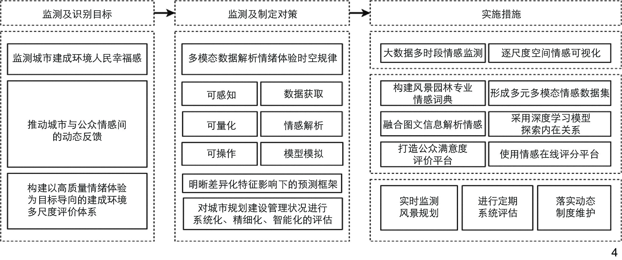 [Results] Sentiment classification theories can be broadly categorized into two main groups: basic emotion theory and emotion dimension theory. The theory of emotion, stemming from the accumulation of emotions, has evolved through the integration of landscape aesthetics, environmental psychology, and other significant theories in landscape gardening. Furthermore, in the context of multidisciplinary integration, the reciprocal exchange of research methods and theories across different disciplines has contributed to a more comprehensive perspective in the field of emotion research. With the advent of the 21st century, urbanization has ushered in both convenience and environmental degradation. It is crucial to recognize the dual impact of urbanization – the positive aspects of convenience and the negative consequences of environmental degradation. As cities evolve, the emphasis on creating sustainable and ecologically conscious urban spaces has become paramount. The shift towards garden cities and eco-friendly urban development reflects a collective recognition of the importance of preserving the environment amid rapid urban expansion. Despite these positive strides, there remains a notable gap in the design approach adopted for urban built environments. The prevailing focus on form and functionality, while essential, tends to sideline the emotional and psychological well-being of the urban residents. Furthermore, the spiritual connotations that an environment should embody are often neglected in the urban design discourse. The profound impact of surroundings on the human spirit and well-being is a crucial aspect that needs to be integrated into the design philosophy. Spaces should evoke a sense of belonging, cultural identity, and emotional resonance, thus contributing to a holistic urban experience. In light of these considerations, the call for emotional design becomes increasingly urgent. The research finds that the sources of data for sentiment research are primarily text-based, with relatively few direct analyses of image, speech or other forms of data. Furthermore, the research indicates that the current research mainly focuses on factors influencing positive sentiments, while paying less attention to negative sentiments. In terms of methodology, emotion recognition is a multimodal process, but there are significant variations in the quality and quantity of information available from different sources.