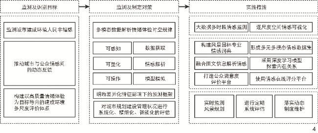 [Methods] The development of emotion research is first examined, including changes in emotion research theories and research methods. By virtue of the CiteSpace bibliometric analysis software, this research illustrates and scrutinizes the contemporary research development and salient aspects of public sentiment experience and built environment. By examining an extensive corpus of literature, the research extracts and elucidates the attributes of sentiment research from the three dimensions of data, content and method. To grasp the shifting dynamics of public sentiments more effectively, the research proposes a series of processes applicable to urban sentiment surveillance and discernment, thereby capturing the public’s sentiments in a more inclusive and systematic manner.