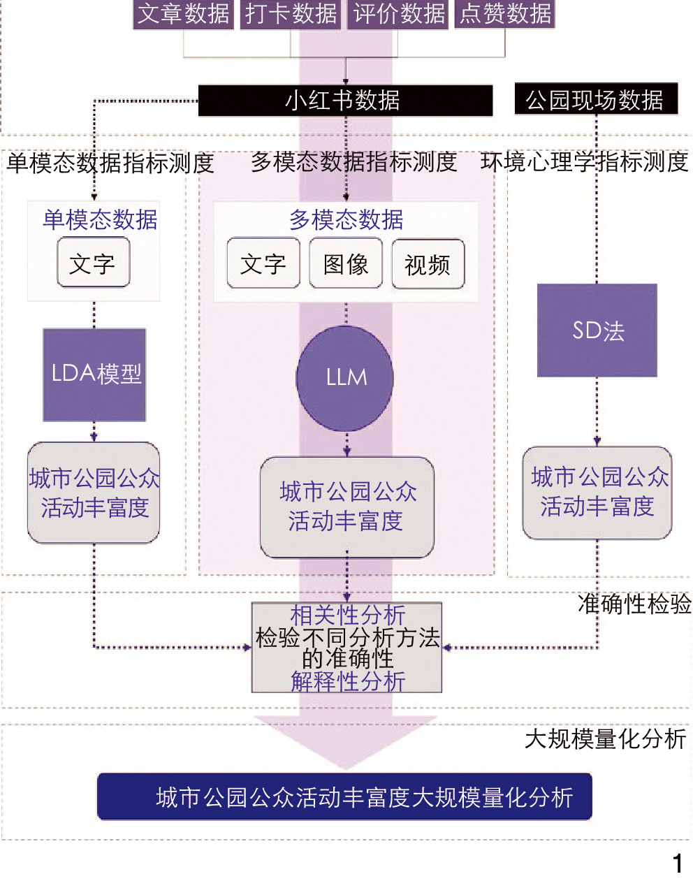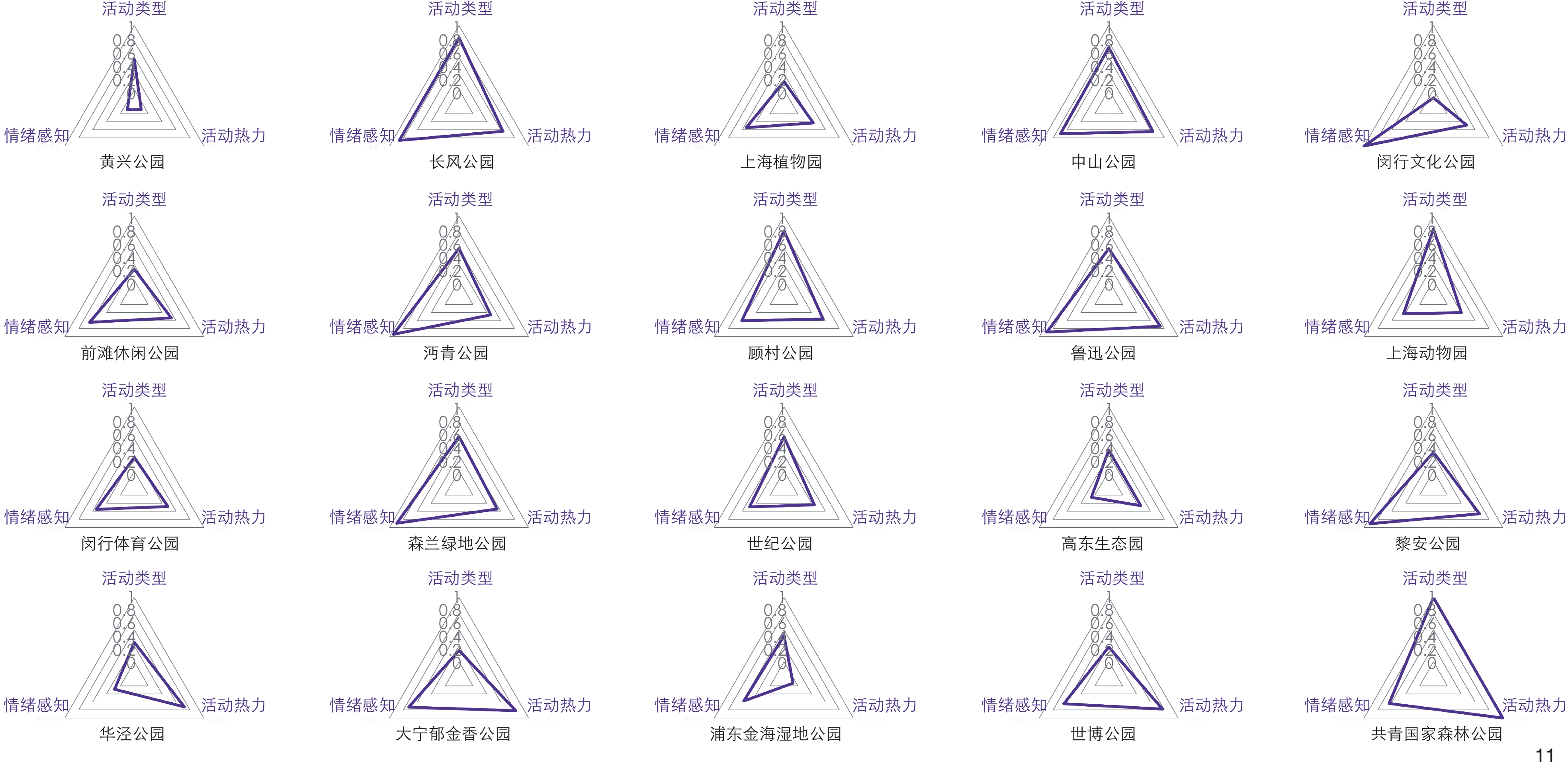 [Results] This research explores various measurement methods for public activity richness. Using traditional questionnaire perception measurement as a benchmark, correlation analysis is conducted to compare the accuracy of traditional classical analysis and LLM analysis. Statistical results show that LLM analysis can significantly outperforms traditional classical analysis in terms of accuracy for public activity richness and emotional perception data, demonstrating high consistency with the benchmark questionnaire method. And LLM analysis proves superior in evaluating public activity richness. Based on these findings, LLM technology and multi-modal social media data are used to conduct large-scale data retrieval and analysis of the 20 largest urban parks within Shanghai’s Outer Ring, and public activity richness and sub-indicators for these parks are calculated, forming activity portrait for each park, including activity heat data, activity type, and emotional perception data. Moreover, specific suggestions for urban park improvement strategies are provided, achieving a panoramic and high-precision analysis of park public activity richness.