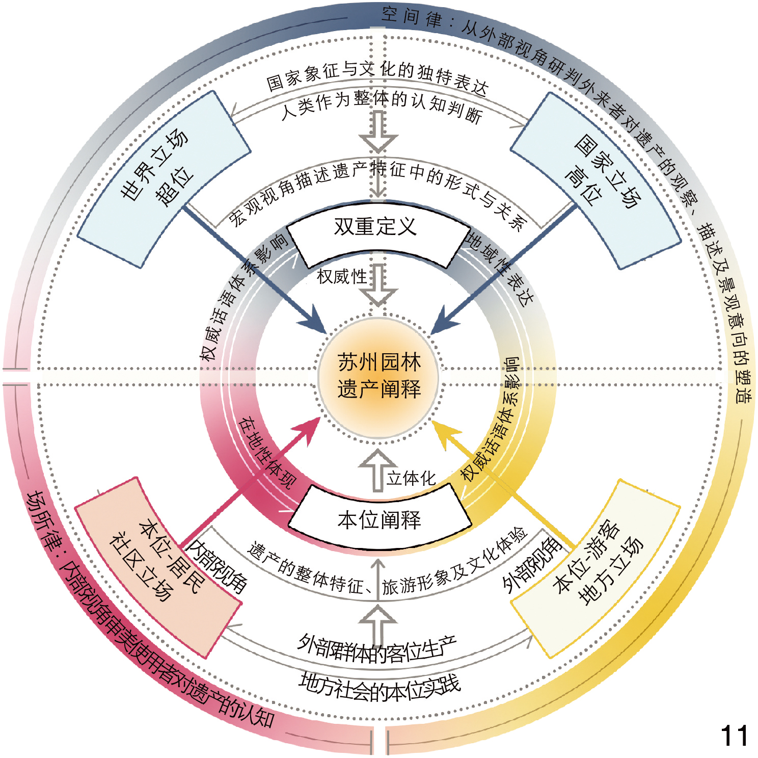 [Conclusion] This research demonstrates that a heritage interpretation method under a pluralistic discourse framework can break free from authoritative heritage discourse that typically focuses on management and indoctrination, and can encourage the inclusion of multiple stakeholders who consider the public attributes of heritage protection. The structural relationships and conflicts between local practice and external production in Suzhou Gardens show that heritage landscapes involve both local self-construction (place) and external social production (space). For sustainable world heritage protection, it is essential to balance expert-driven heritage value assessments with public engagement, particularly by incorporating local emotions and community memories into heritage discourse. This may facilitate the creation of a more integrated and diversified heritage system that better reflects the complexity of contemporary heritage values and supports its sustainable development.