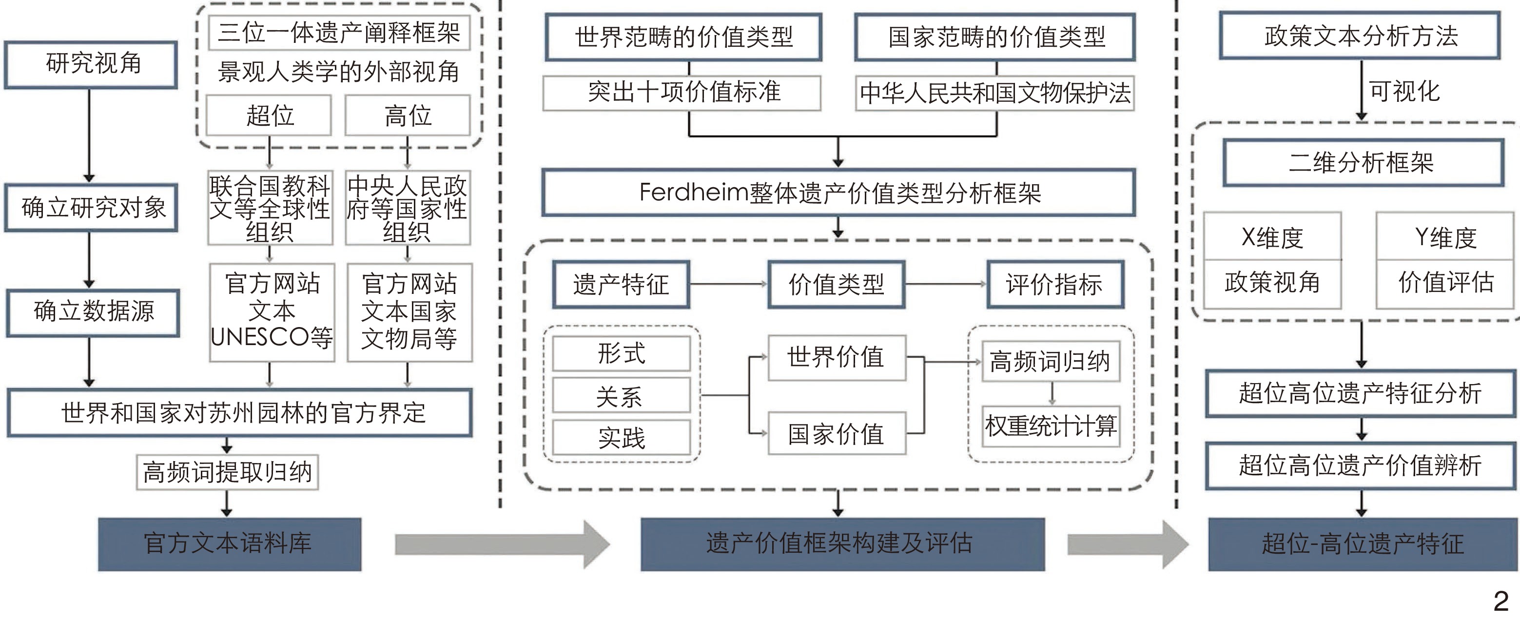 [Objective] This research explores the modern concept of heritage, combining objective existence and subjective perception, within a global-national-local framework. Heritage interpretations often overlap and conflict due to varying perspectives across these levels. Landscape anthropologist Hirotake Kawai’s “Multi-phase” concept explains the cognitive collisions and integrations that occur during heritage discourse exchanges. Landscape anthropology distinguishes between “space” (globalization) and “place” (localization), reflecting how external forces shape environments versus how locals perceive and construct their surroundings. In this context, heritage interpretation involves reconciling diverse cultural perspectives.The research uses Suzhou Gardens as a case study to develop a multi-subject heritage interpretation system within a pluralistic discourse framework. Suzhou Gardens are selected for their cultural duality and rich environment. The aim is to reconstruct the heritage discourse, facilitating dialogue between Suzhou Gardens and the world heritage system while considering the cognitive differences of various stakeholders, including local communities. This approach enhances the integration of internal and external perspectives in landscape anthropology and fosters a multi-party dialogue mechanism.