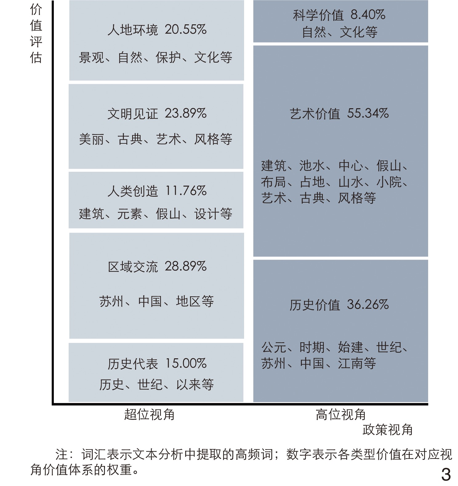| 关系——精巧设计的 中华意境投射 | 人类创造 突出价值标准(Ⅰ) | 建筑、元素、假山、 设计、创造等 | 11.67 | 艺术价值 | 建筑、池水、中心、 假山、布局、占地、 山水、小院、艺术、 古典、风格等 | 55.34 | |