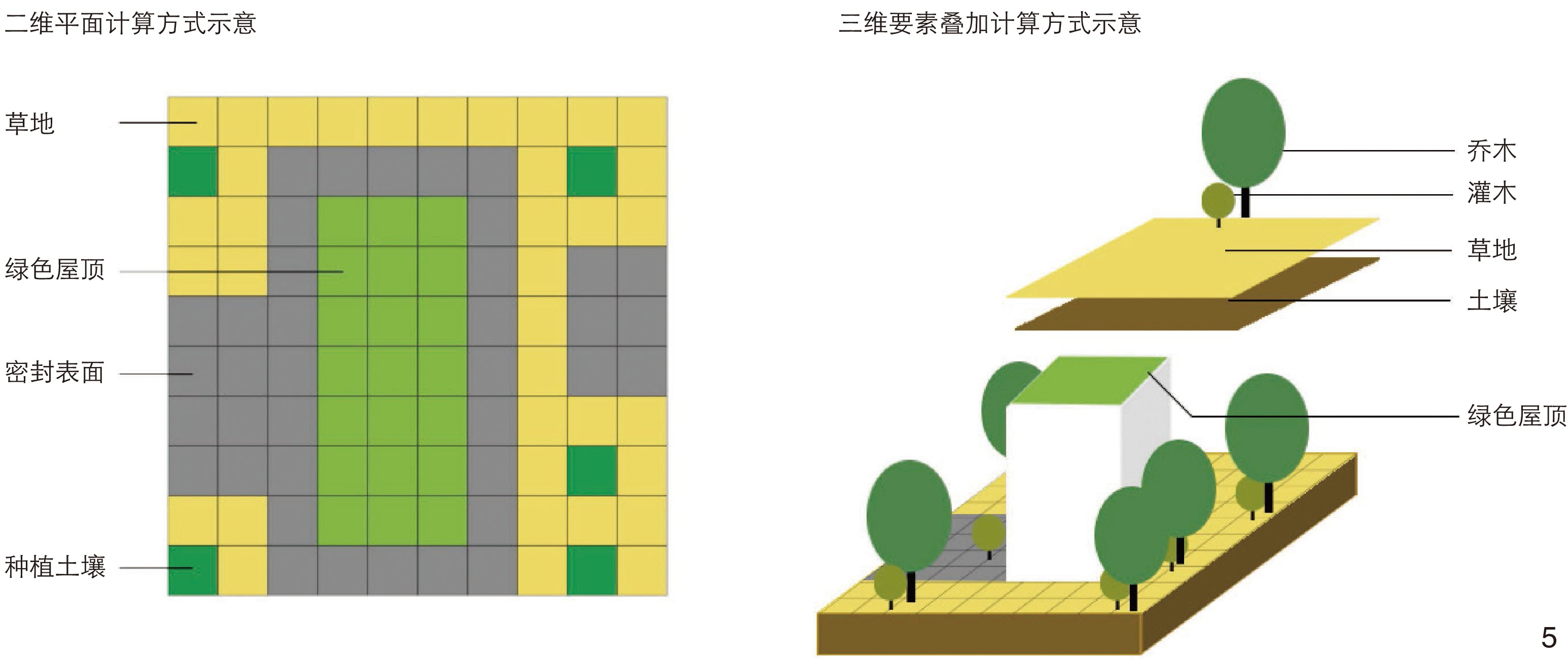 | 德国柏林 BAF | 二维 | 土地管理、雨水管理 | 乔木、灌 木、种植 土壤或基 质、草地、 绿色屋顶、 垂直绿化、 透水铺装、 雨水花园、 渗透设施 | — | 种植土壤 | — | 强制性或自愿性取决于规划区域 | 土地利用类型、土地占用指数、新建/现有开发项目扩展 |