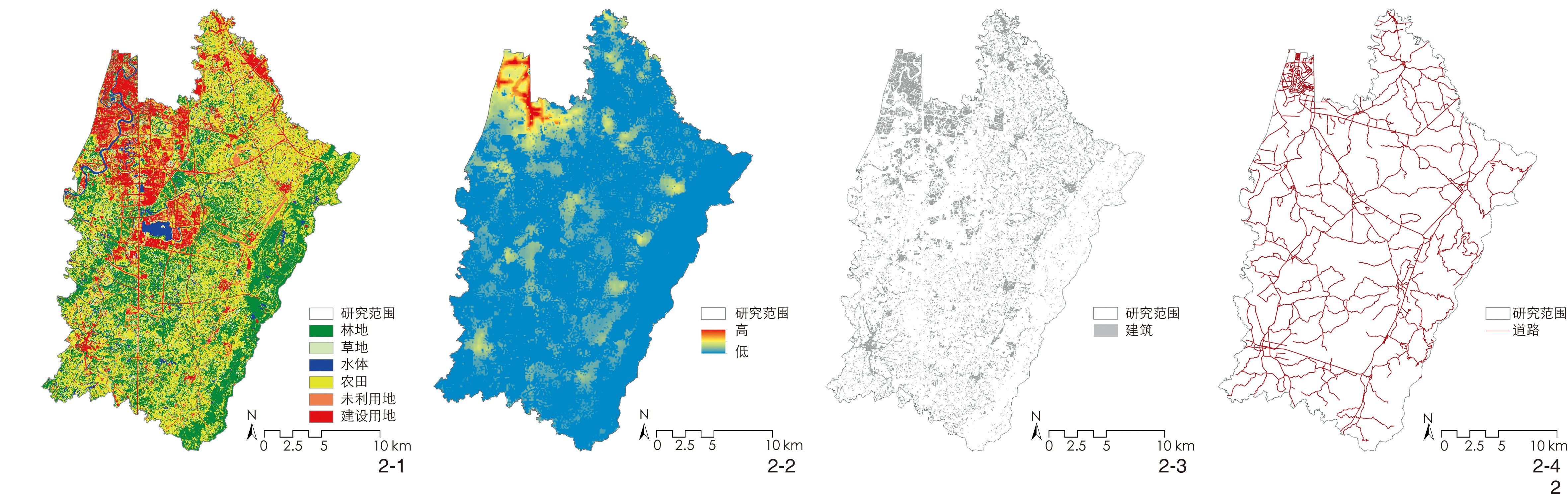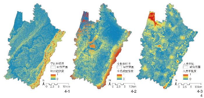 表1 威胁因子的最大影响距离和权重Tab. 1 Maximum influence distance and weight of threat factors |