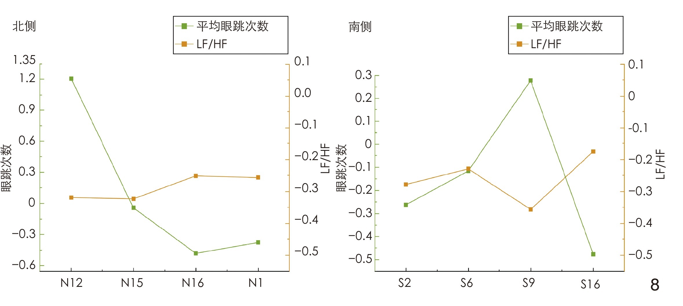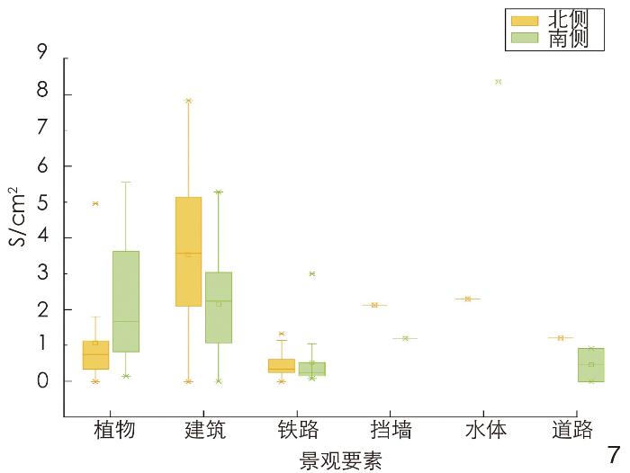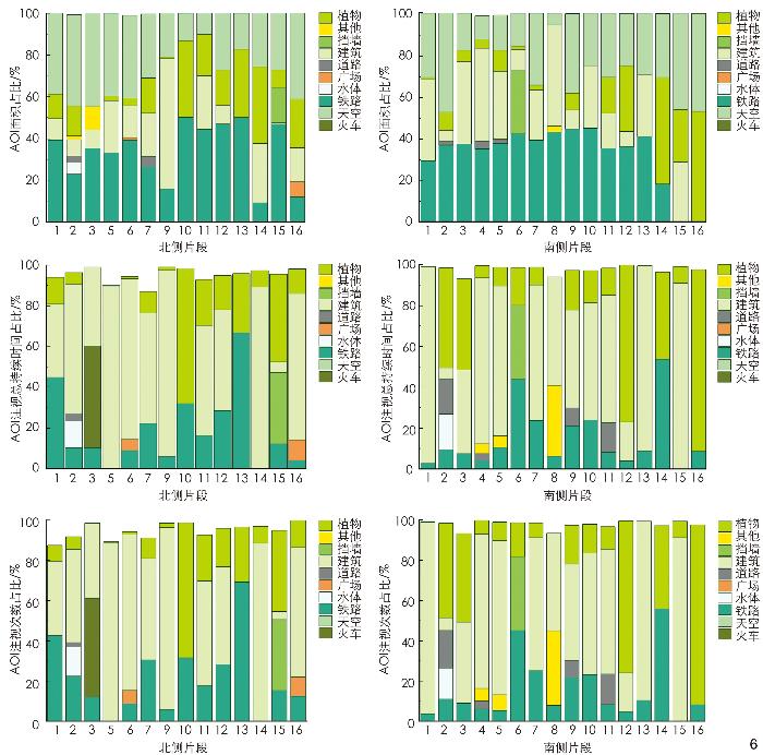 Through analyzing the correlation between landscape characters, eye movement indicator and heart rate indicator, the research mainly obtains the following findings. 1) Artificial elements are more attractive than natural ones. The sequence of fixation duration among all landscape elements is listed as follows: Building > plant > road > railway. In addition, the sequence of people’s attention to architecture from high to low is listed as follows: Public buildings along the water > public buildings with varied skylines > antique style buildings > campus buildings > railway buildings > residential buildings > bungalows. As for the indicators of the first fixation duration and average fixation duration, it looks significantly different (p<0.01) for the buildings, roads, railroads and plants located in the north side of the railroad. After testing, it is found that first fixation duration looks significantly different between buildings and railroads (p<0.01), and between buildings and plants (p<0.05) on the north side of the railroad, and average fixation duration looks significantly different between buildings and plants on the north side of the railroad (p<0.01); whereas it looks that there is no statistically significant difference between the buildings, roads, railroads and plant elements located in the south side of the railroad in terms of both first fixation duration and average fixation duration. Upon standardization of the fixation durations of various elements on the north and south sides, it is found that there exist significant differences in relative fixation duration between plants, buildings, railroads, and roads on the north and south sides (p<0.01). 2) Sky openness and skyline richness positively affect the physical activity level of the subjects. The frequency domain indicators LF/HF of heart rate data in spaces at both the north and south sides show a positive correlation with sky openness (north side: correlation value is 0.55, p<0.05; south side: correlation value is 0.54, p<0.05). 3) Scenes containing water and plant groups with rich layers, colors and varieties are more attractive to the eye. In general, water bodies may obtain the longest fixation duration, followed by buildings. With a shorter fixation duration overall, are less attractive to people. Compared with single plant, the fixation duration of group plants with rich vertical structures and colorful leaves is longer. 4) In terms of continuous landscape, passengers’ attention is more easily attracted by special landscape nodes. The preference degree on the north side is higher than that on the south side. Specifically, the segments with higher preference degrees within the research area include the train parking area, Qingfeng Park activity field, Beijing East Station, Gaobeidian ancient block, heritage park, and green park.