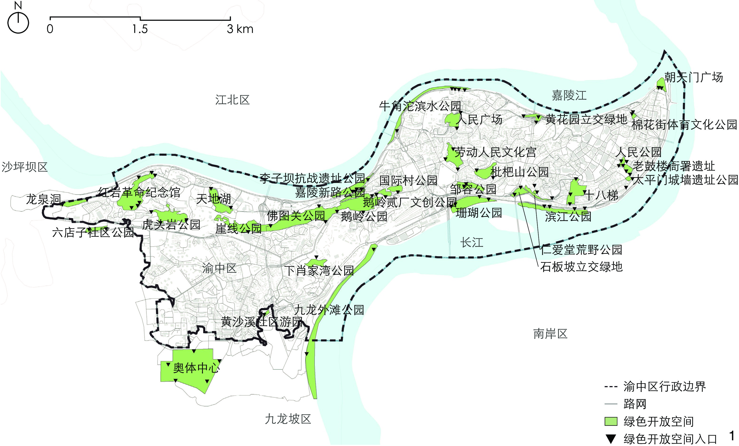 表3 渝中区绿色开放空间分类Tab. 3 Classification of green open spaces in Yuzhong District |