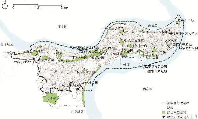 | 滨江 | 带状 | 牛角沱滨水公园、九龙外滩公园 | 李子坝抗战遗址公园、滨江公园 | 50 |