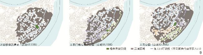 | 路径起止点数据 | 结合2021年重庆市渝中区用地规划公开图纸(从重庆市渝中区人民政府官方网站获取),检索高德地图API的POI类型,抓取绿色开放空间和建筑相关数据,建立作为路径起点的绿色开放空间出入口点数据集和作为路径终点的建筑出入口点数据集 | 经过实地走访调研再次纠正、确认起止点,属性包括名称、类型、形状、面积、出入口位置等 |