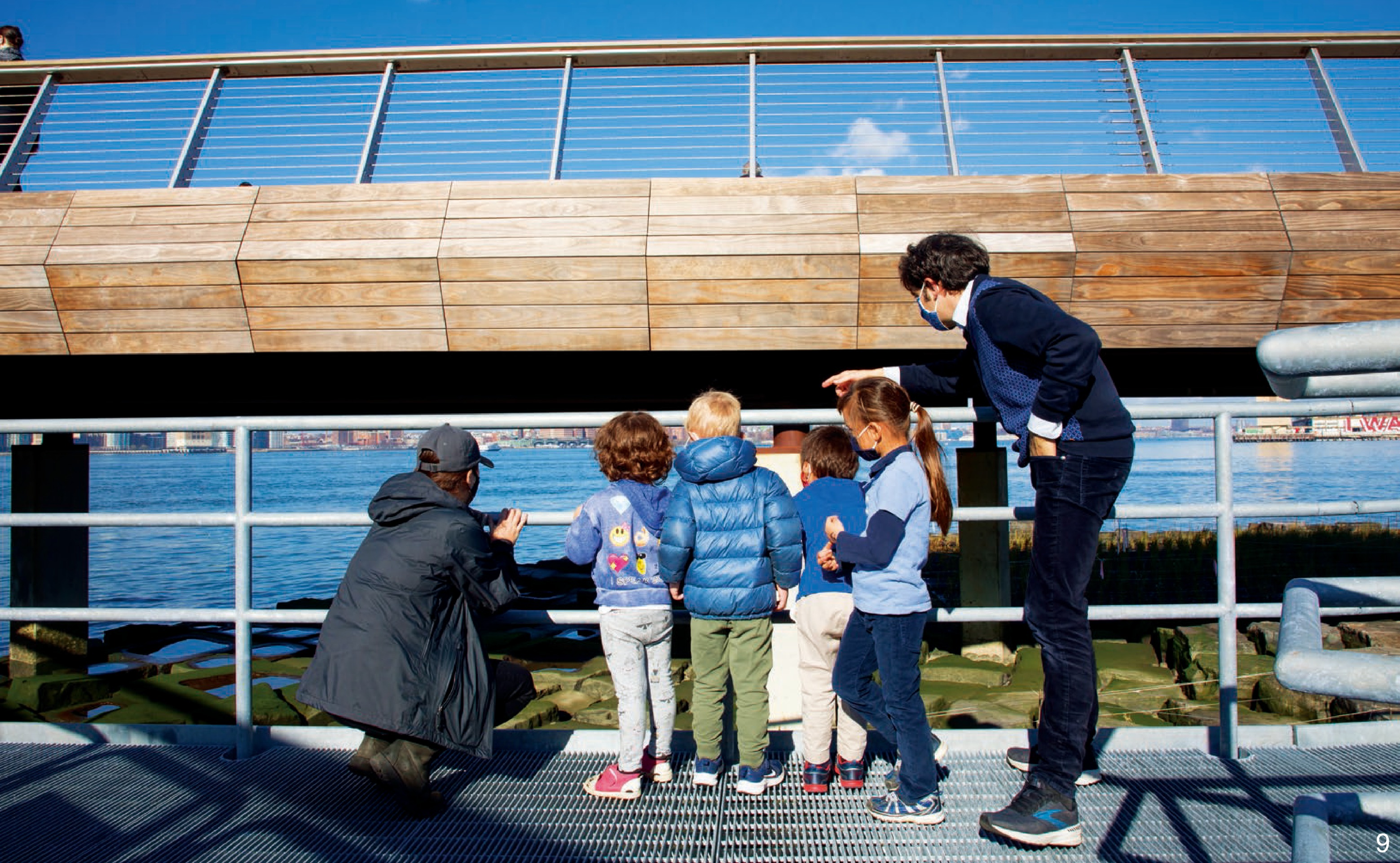 图9 拓展教育影响,培养环境意识。学校组织在公园专业人员的带领下参观码头的生态区,这些成长经历有助于培养年轻一代的环境意识Fig. 9 Expanding education, cultivating stewardship. School groups guided by expert park staff tour the pier’s ecological zones; these formative experiences help inspire a new generation of stewards |