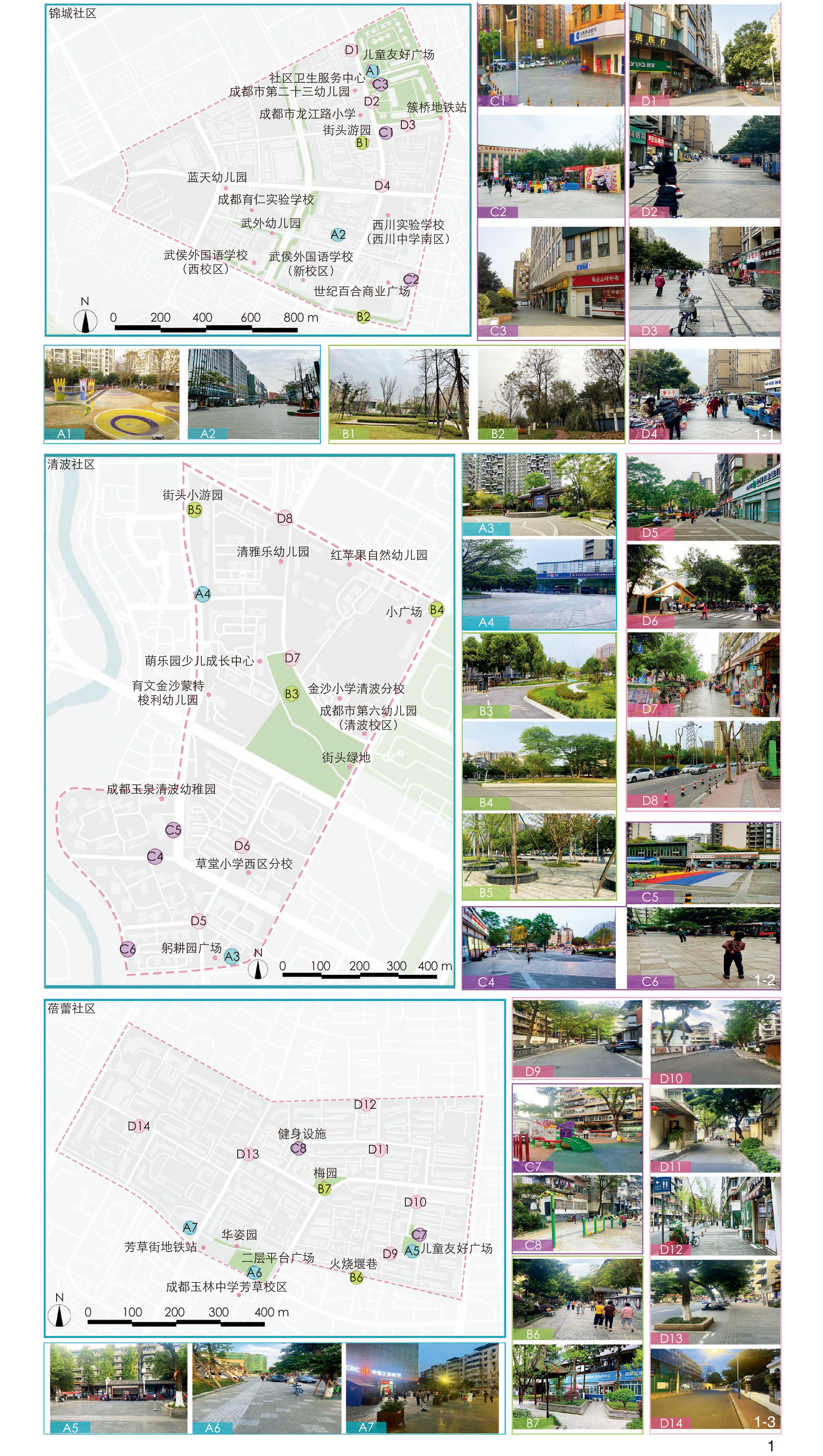 图1 3个社区的典型活动空间分布Fig. 1 Distribution of typical activity spaces in the three communities |