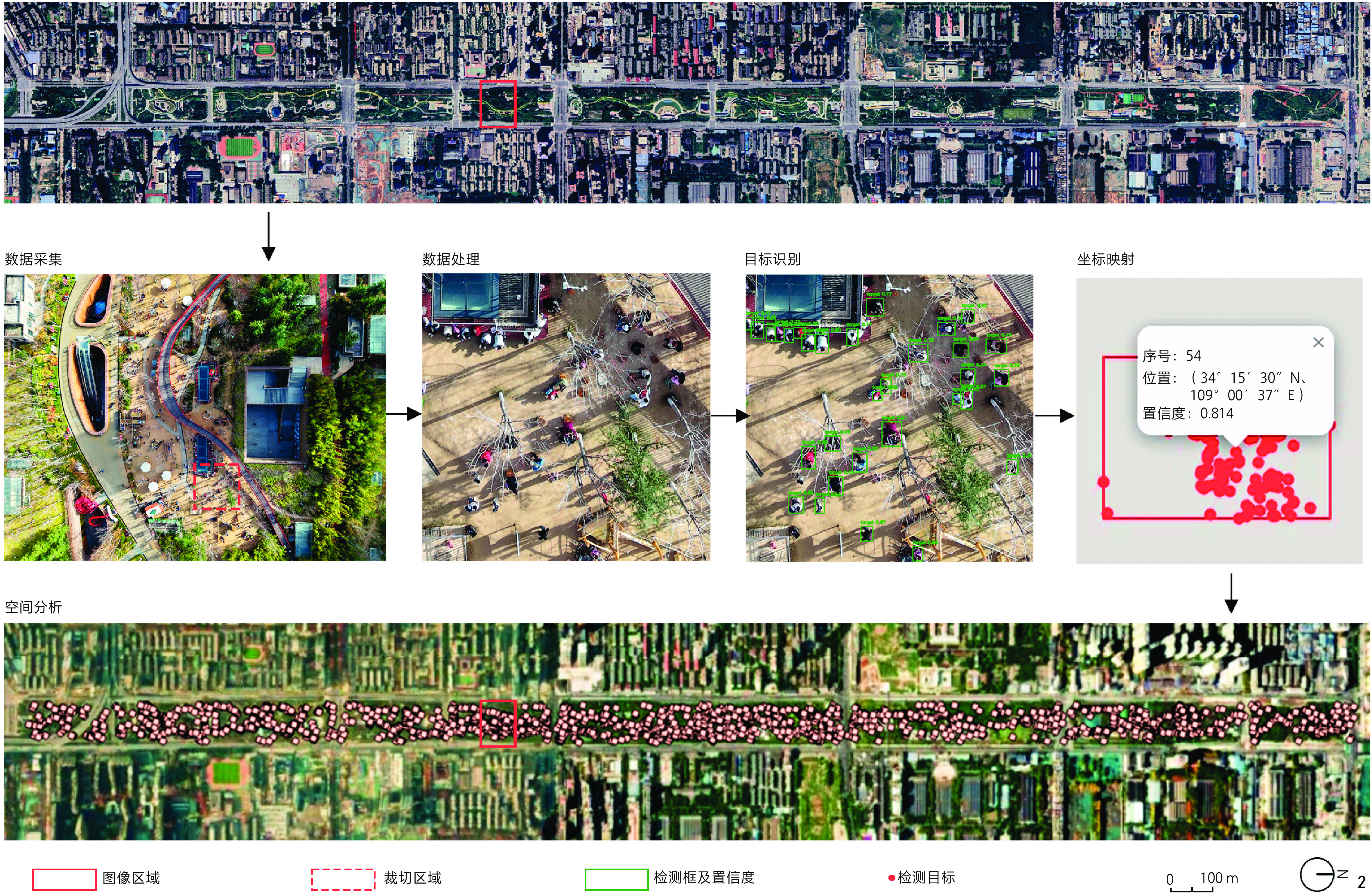2、融合改进YOLO模型与地理坐标映射技术,构建高精度时空数据集,实现活力热点识别与动态分析,为城市景观规划与精细化管理提供数据支持。
