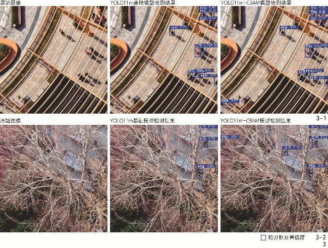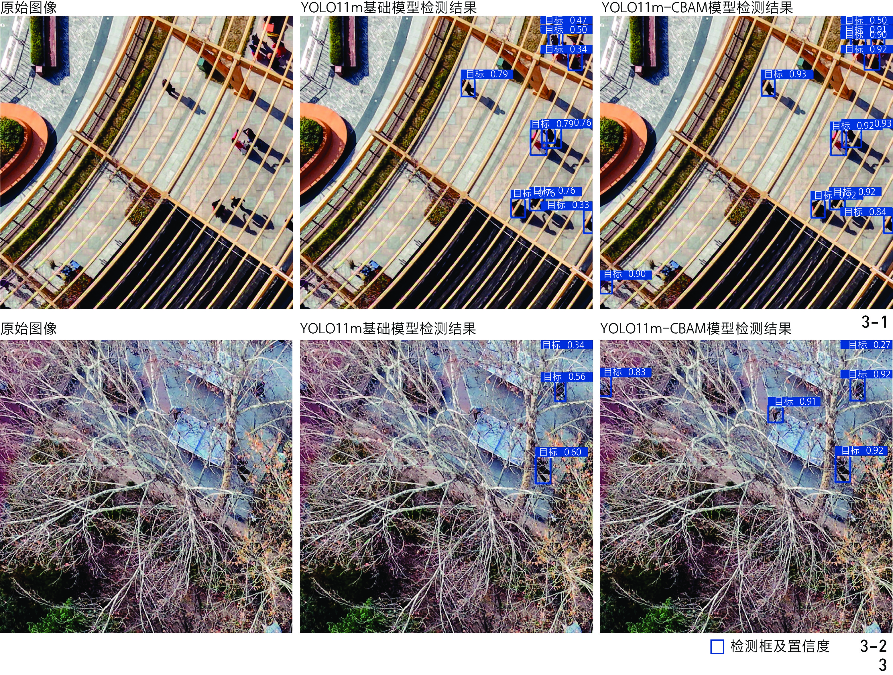 [Methods] Between March 27 and 30, 2025, continuous UAV-based aerial photography was conducted at a fixed altitude of 75 m during six standard time periods (08:00, 10:00, 12:00, 14:00, 16:00, 18:00), yielding over 2,300 high-resolution images. A manually annotated dataset of 2,000 sub-images with 12,340 pedestrian instances is constructed for model training. To address challenges of small-scale targets and complex occlusions in aerial imagery, an enhanced YOLO11m-CBAM model is developed by embedding a convolutional block attention module (CBAM) into YOLO11m. The improved model achieves notable performance gains: mAP50 increases from 77.1% to 81.3%, mAP50–95 from 45.6% to 51.7%, with precision and recall reaching 86.4% and 72.0% respectively, demonstrating enhanced robustness under medium and low occlusion conditions. Detection outputs are orthorectified to geographic coordinates to construct a structured spatiotemporal dataset. Spatial analysis employs kernel density estimation, coefficient of variation (CV), spatial Gini coefficient, and the “latitude-population” curve to characterize multidimensional vitality patterns.