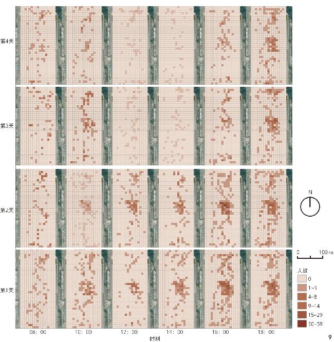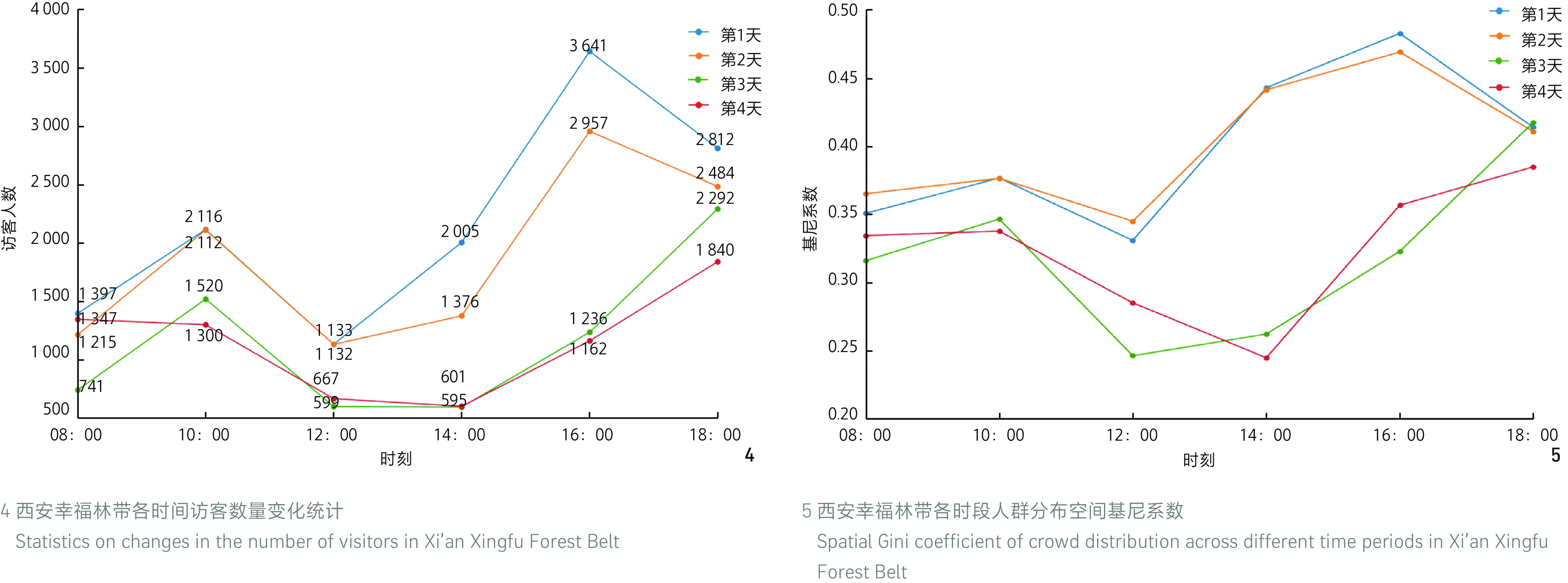 3、揭示西安幸福林带活力“双峰式”时序规律与空间集聚特征,阐明设施与活动对活力的驱动机制,为设施优化与管理提供依据。