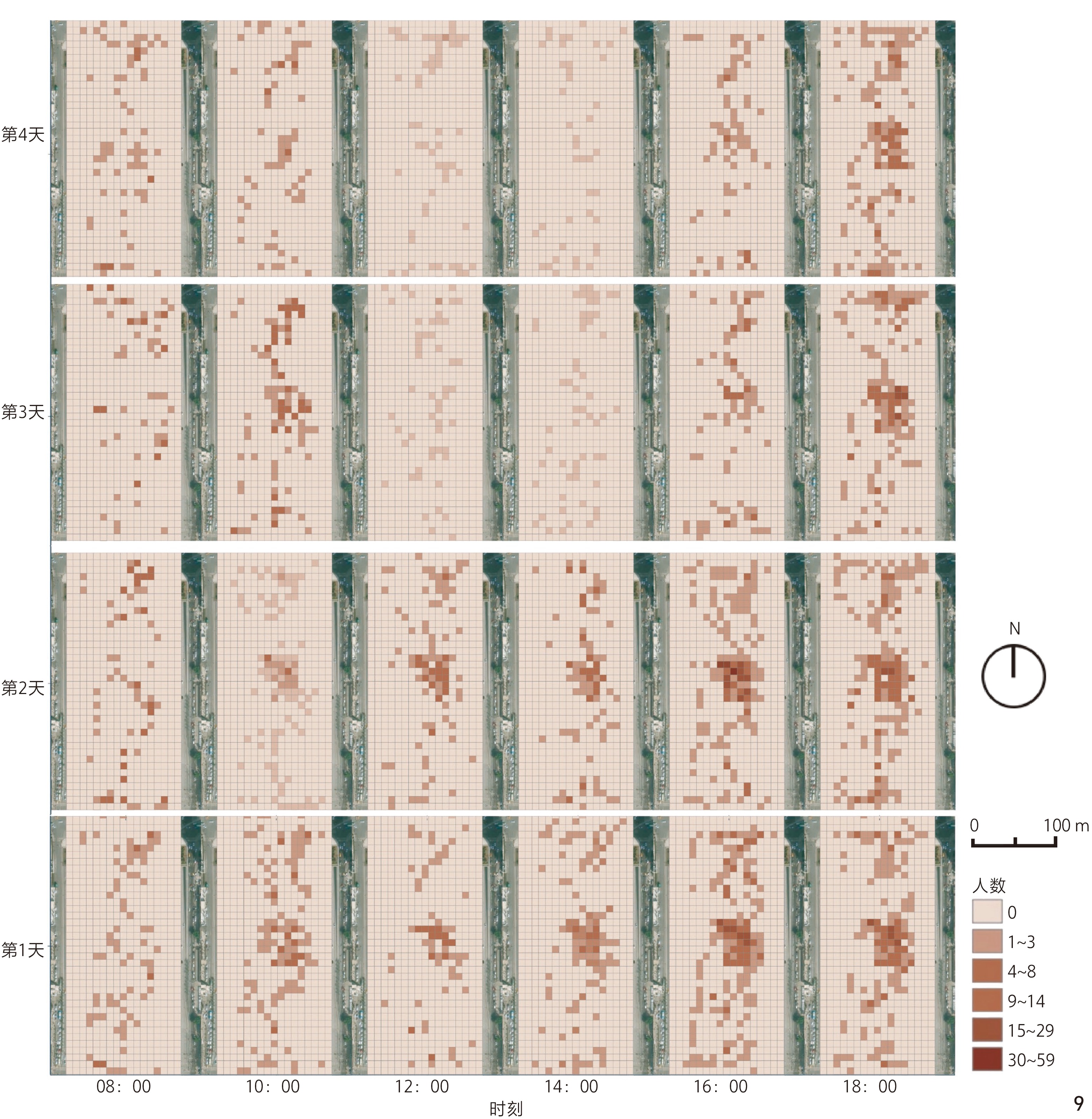 1、提出基于无人机航拍时序影像的人群动态测度方法,突破传统监测方法的精度局限,填补城市公园活力精细测度的研究缺口。
