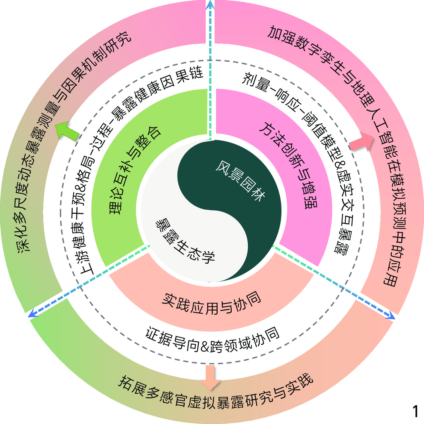 2、方法创新与精准量化。暴露生态学构建“格局-过程-暴露-健康”核心因果链条,引入“剂量-响应-阈值”模型与虚实交互模拟技术,有效弥补了传统景观设计缺乏科学量化的局限。