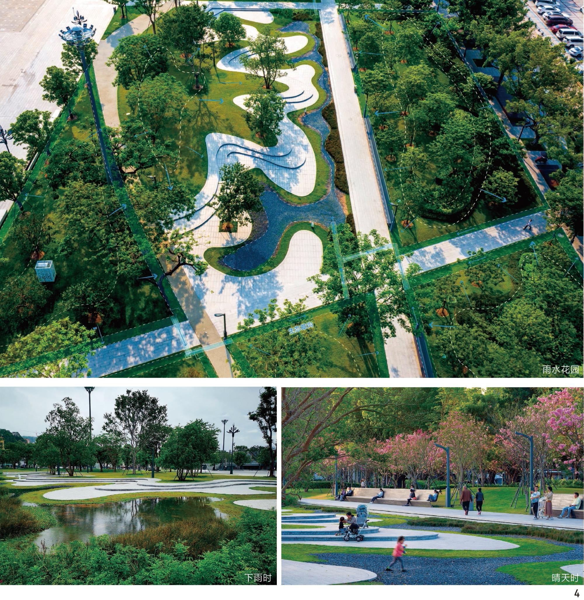 图4 雨水花园下雨天可用来收集雨水,晴天时则是一处活动场地Fig. 4 The rain garden is used to collect rainwater on rainy days and serves as an activity area on sunny days |