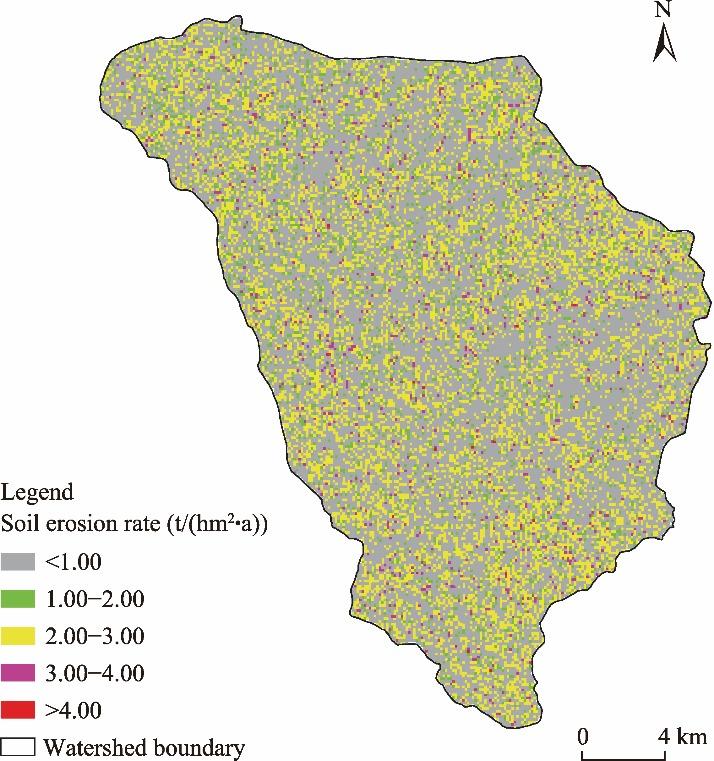 Fig. 10. Spatial distribution of soil erosion rate in the Irga watershed. |