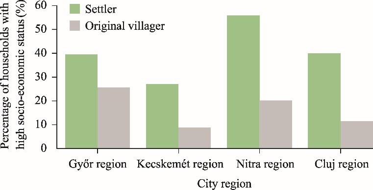 Fig. 4. Percentage of households with high socio-economic status in the four city regions. |
